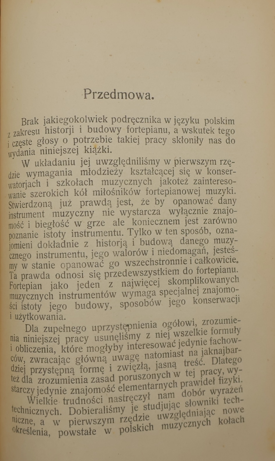 This is a valuable publication on instrumentology and music history, published in 1928 in Lviv by the publishing house “Wiedza Muzyczna”. The authors – Alexander Blahodir and Adam Falimirski – were outstanding experts in piano construction, associated with the Lviv music community and the piano industry.
