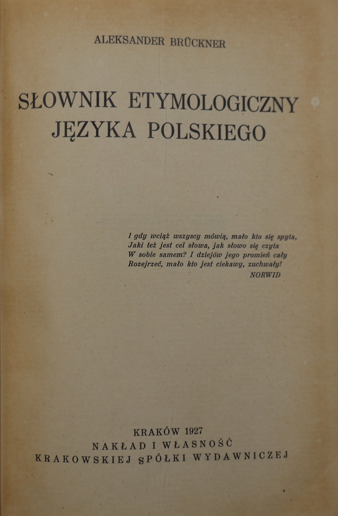 ALEKSANDER BRÜCKNER: ETYMOLOGICAL DICTIONARY OF THE POLISH LANGUAGE [1927].