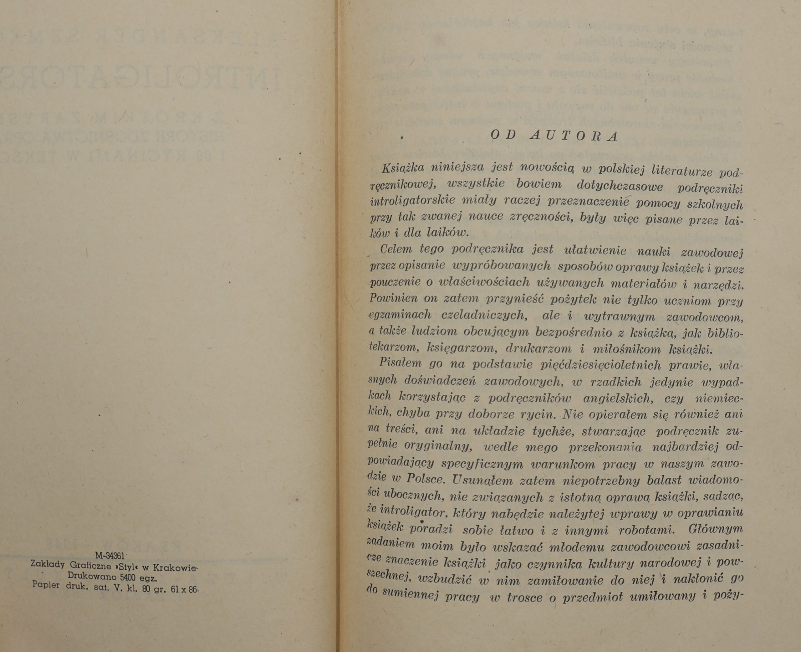 ![ALEKSANDER SEMKOWICZ: BOOKBINDING WITH A BRIEF OUTLINE OF THE HISTORY OF BINDING ORNAMENTATION AND 89 ENGRAVINGS IN THE TEXT [1948]. - Image 2](https://antykwariat-polski.pl/wp-content/uploads/2026/03/IMG_0056.jpeg)