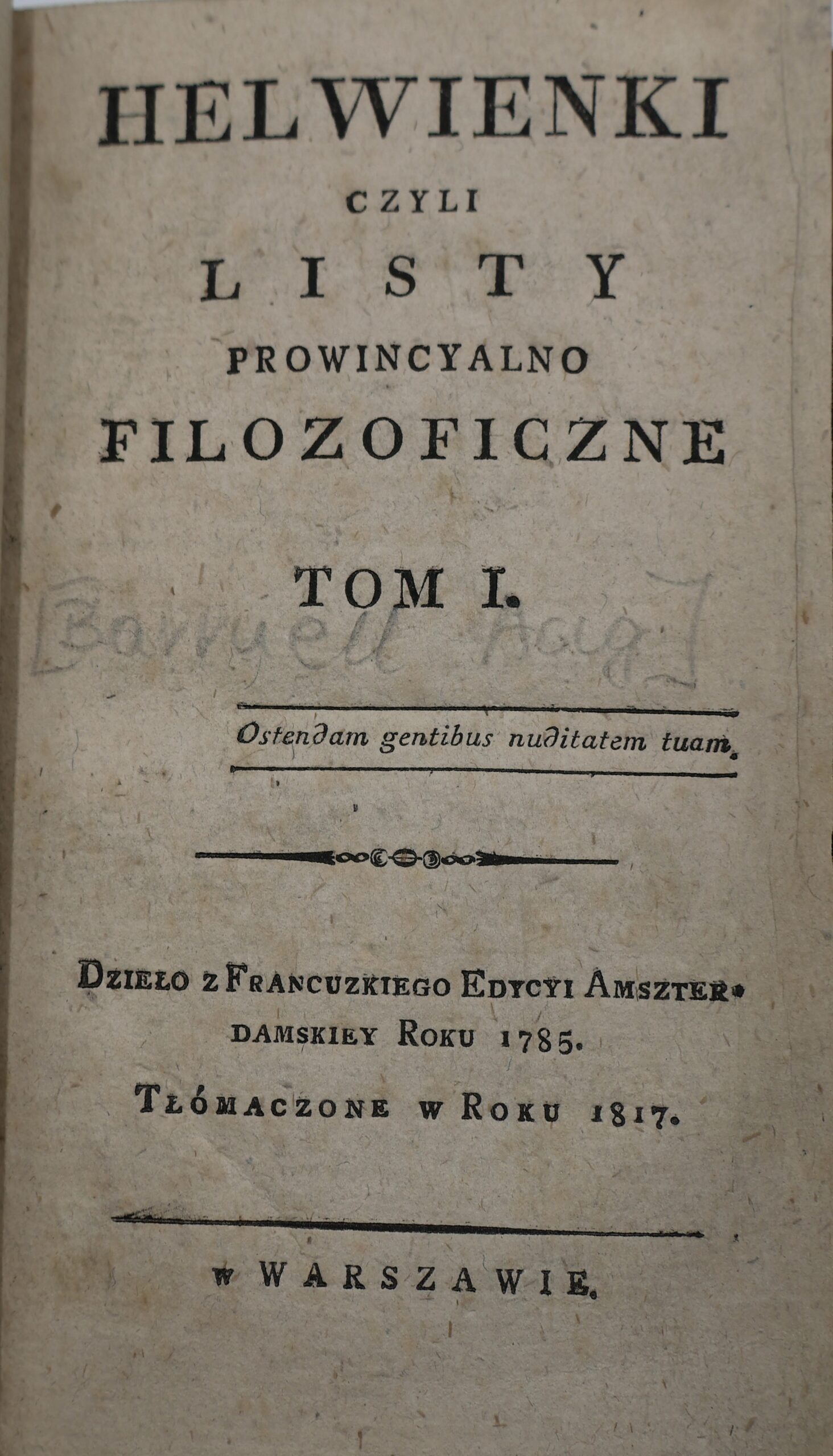 ![BARRUEL AUGUSTIN, HELWIENKI, OR PROVINCIAL PHILOSOPHICAL LETTERS. VOL. I-IV [1817]. - Image 4](https://antykwariat-polski.pl/wp-content/uploads/2026/03/IMG_7796-scaled.jpeg)
