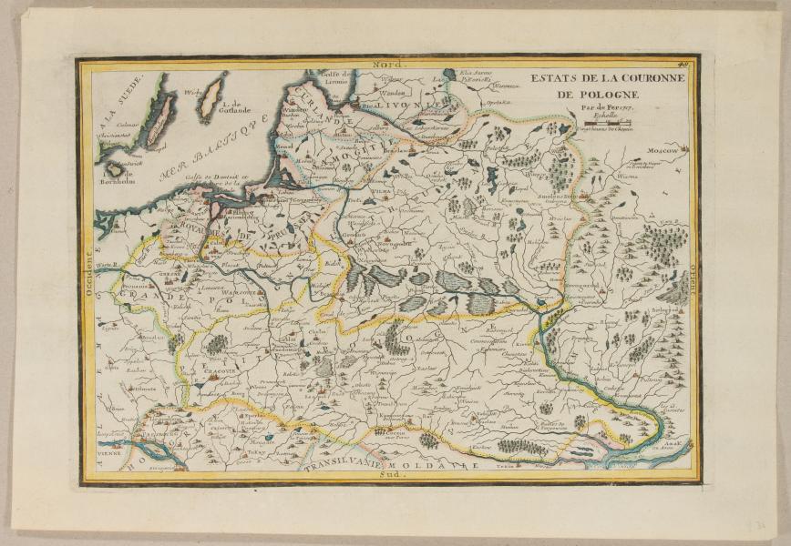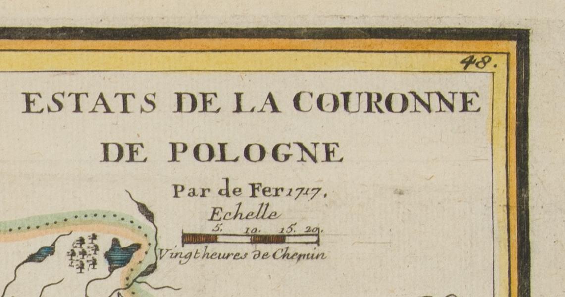 Map of Poland by Nicolas de Fer (1647 – 1720), Parisian cartographer and publisher, included in editions: “L’atlas curieux” after 1717.