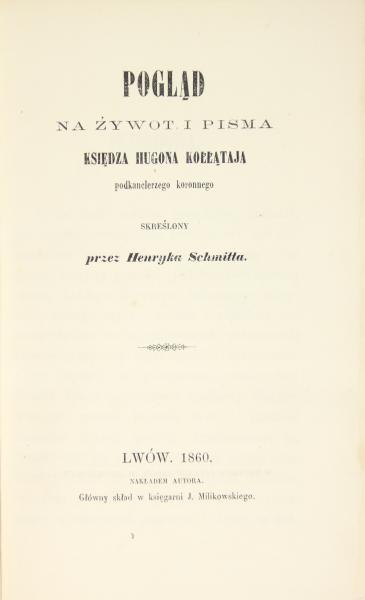 Henryk Schmitt, A View on the Life and Writings of Father Hugo Kołłątaj, Subchancellor of the Crown
