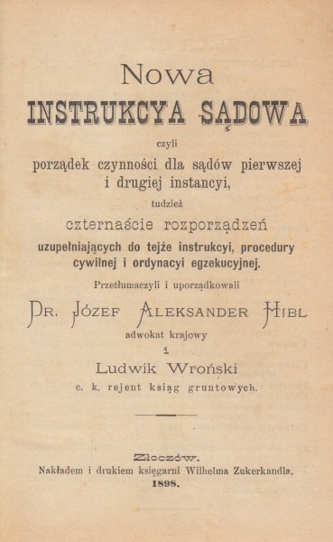 ![Hibl, Józef Aleksander[ [etc?], Nowa instrucya sądowa czyli Porządek czynności dla sądów pierwszej i drugiej instancyi : wraz wraz z czternaście rozporządzeń uzupełnych do tej tej instrucyi, procedury cywilnego i ordynacyi egzekucyjnej](https://antykwariat-polski.pl/wp-content/uploads/2025/04/migrated_image_28367_1.jpg)