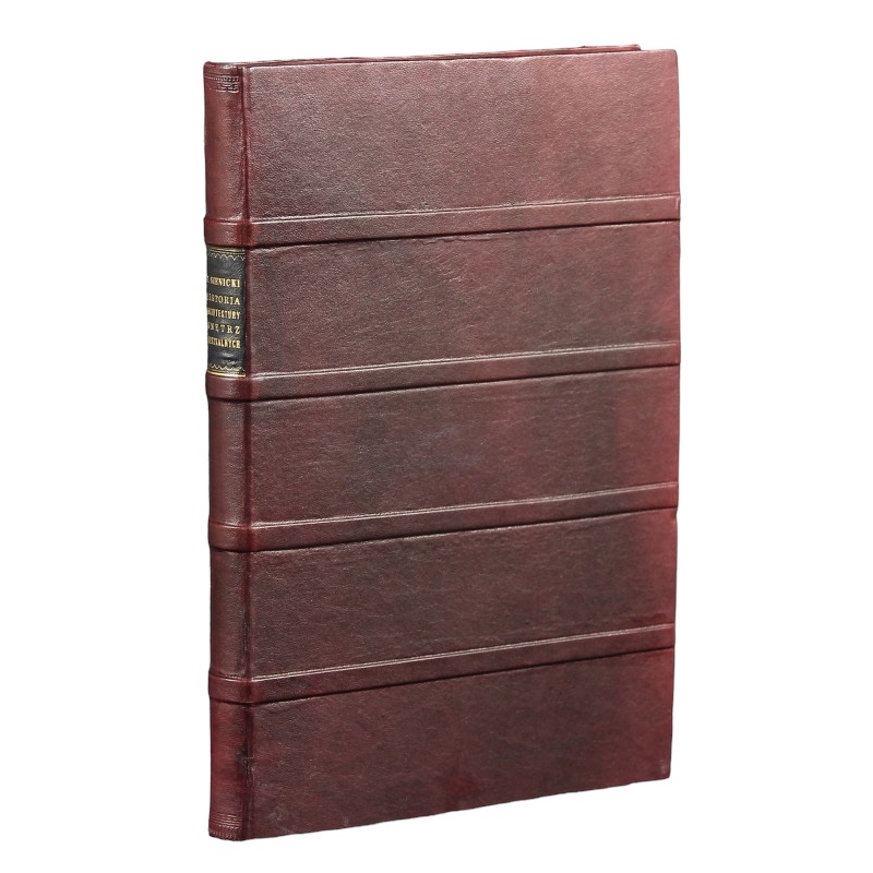 A clean copy in good condition. Reinforced at the sewing of the pre-title card. Full burgundy leather. The edges of the cards are stained.