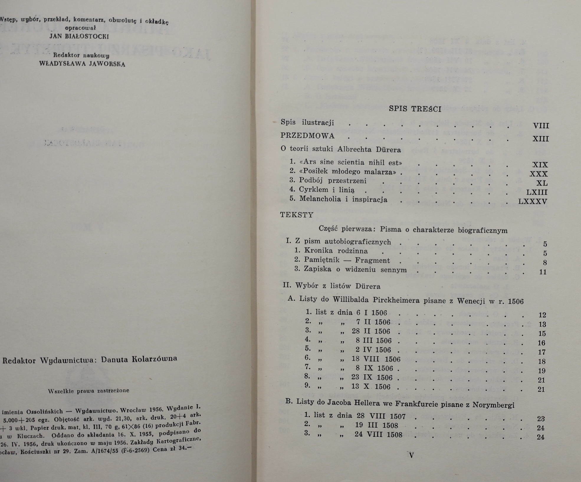 This is the first edition of the fundamental work of the eminent art historian Professor Jan Bialostocki (1921-1988) – one of the most eminent Polish humanists of the 20th century, long-time director of the National Museum in Warsaw and professor at Warsaw University. The publication was published in 1956 in Wroclaw by the Ossoliński National Institute, as volume V of the prestigious series “Source Texts to the History of Art Theory.”
