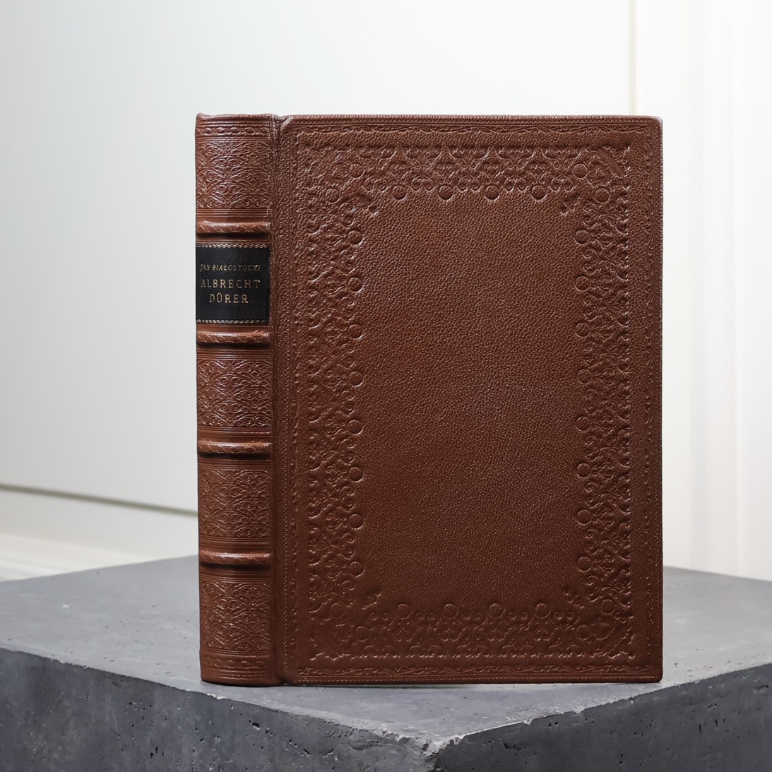 Bialostocki’s work, based on a meticulous analysis of sources and abounding in quotations from original texts, remains to this day an essential work in the field. The publication is enriched with 80 illustrations (including reproductions of Dürer drawings and engravings, facsimiles of manuscripts). A clean copy, bound in an exclusive, hand-made binding of natural leather by the Polish Antiquarian Bookbindery.
