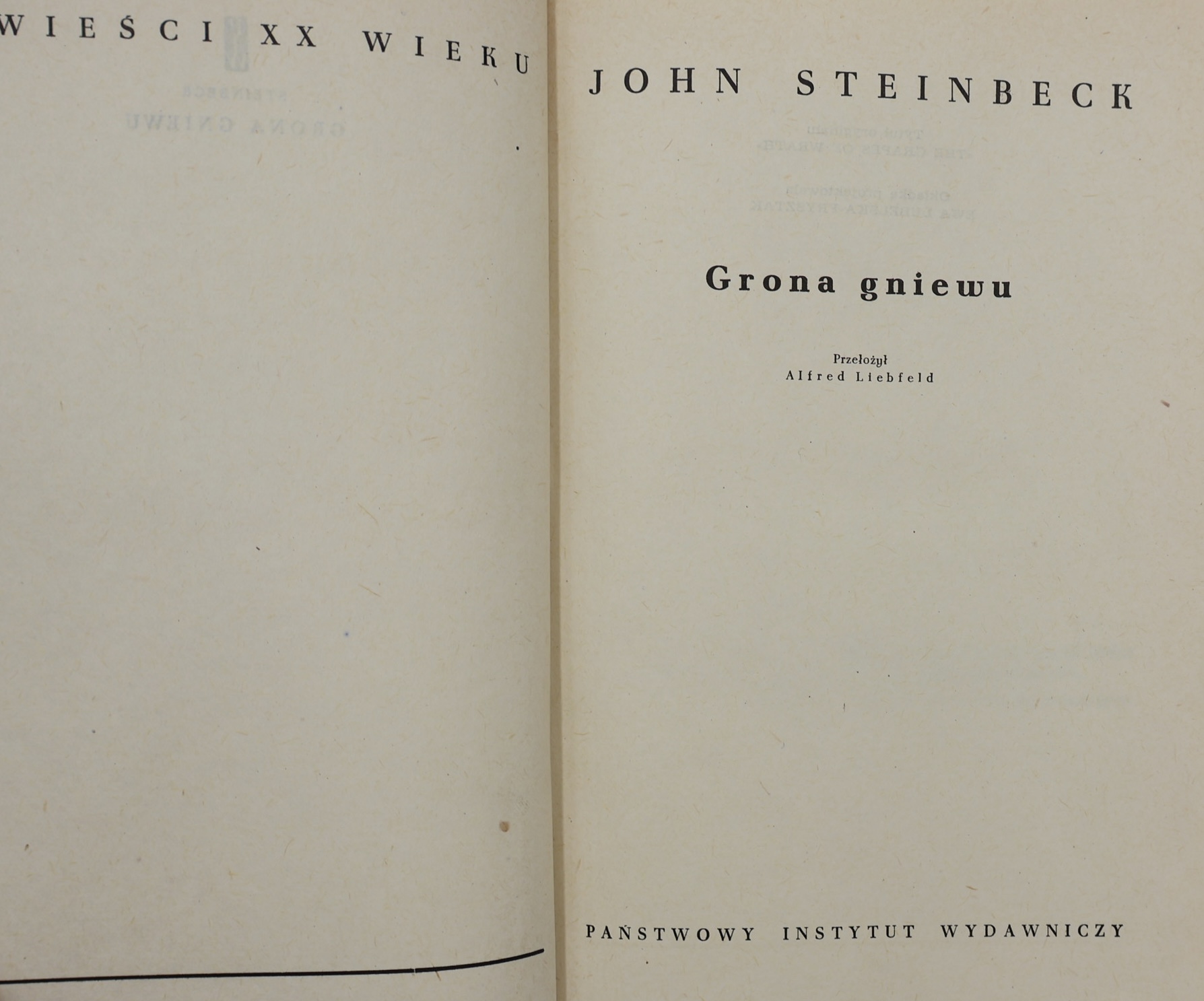 We present the second Polish edition of the masterpiece of American literature – ” The Grapes of Wrath” (original title: The Grapes of Wrath) by John Steinbeck (1902-1968), winner of the Pulitzer Prize (1940) and the Nobel Prize for Literature (1962) . It was published in 1959 in Warsaw by the State Publishing Institute (PIW) in the prestigious series “Novels of the 20th Century” .