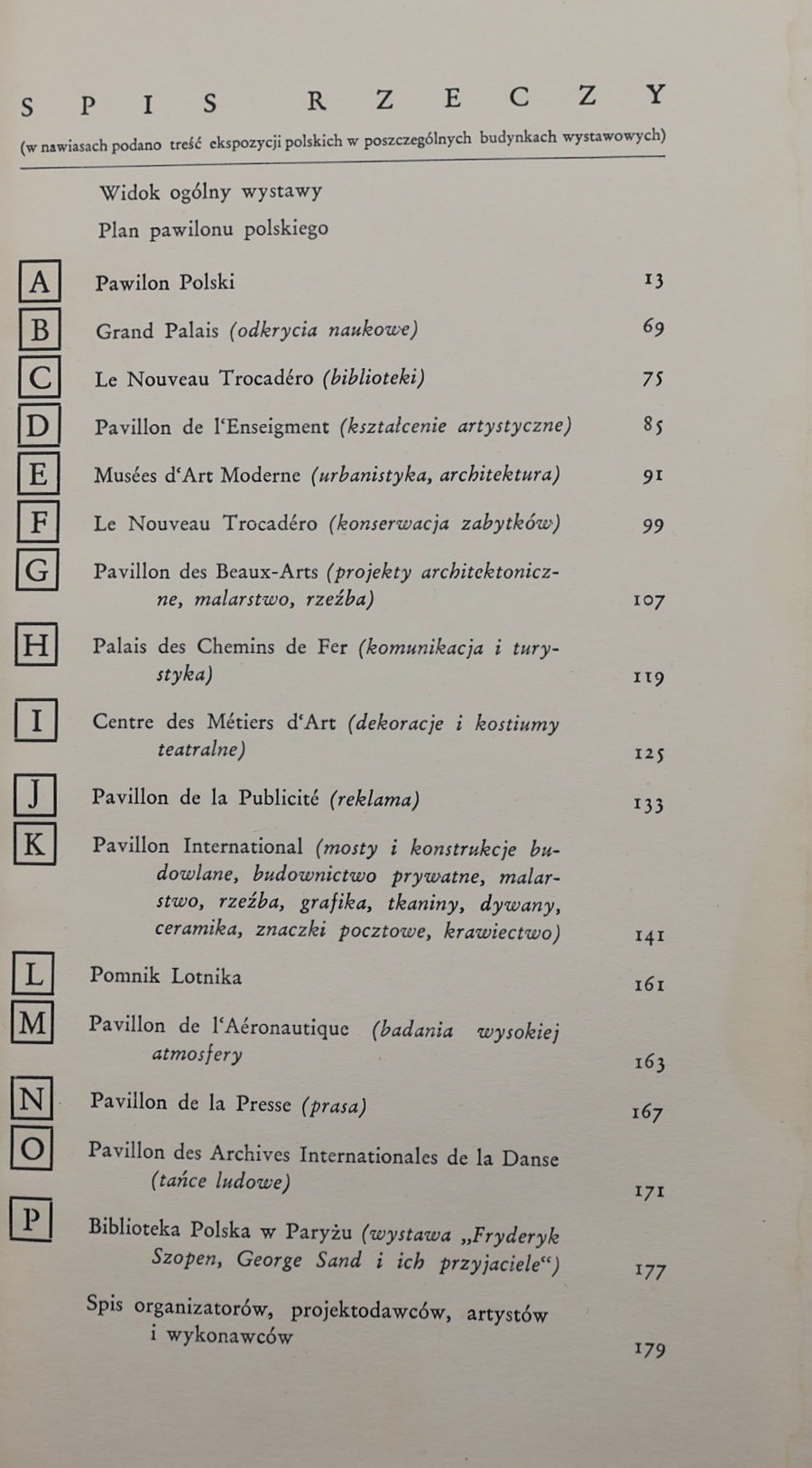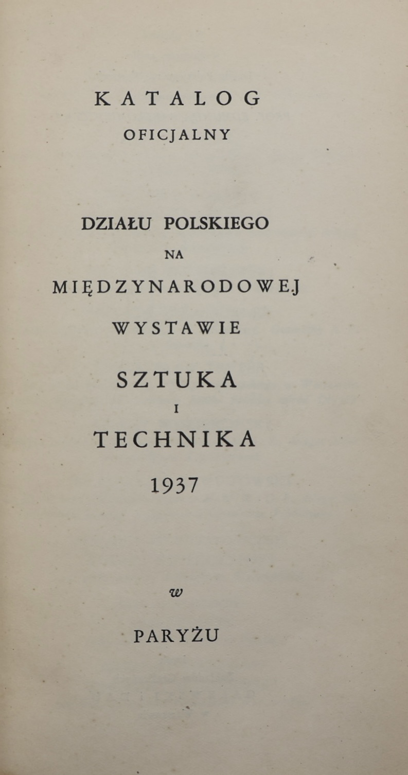 OFFICIAL CATALOG OF THE POLISH SECTION AT THE INTERNATIONAL ART AND TECHNOLOGY EXHIBITION 1937 IN PARIS [1937].