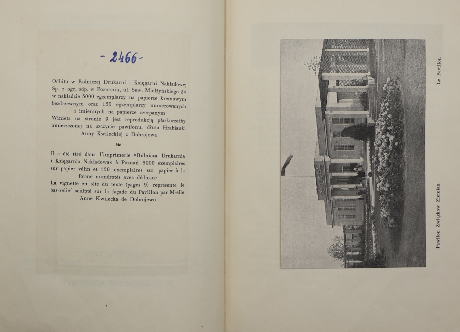 The catalog, 85 pages long, contains numerous illustrations in the text – photographs of the pavilion, exhibits and documents. The copy is numbered (3000/2466), indicating a limited edition.