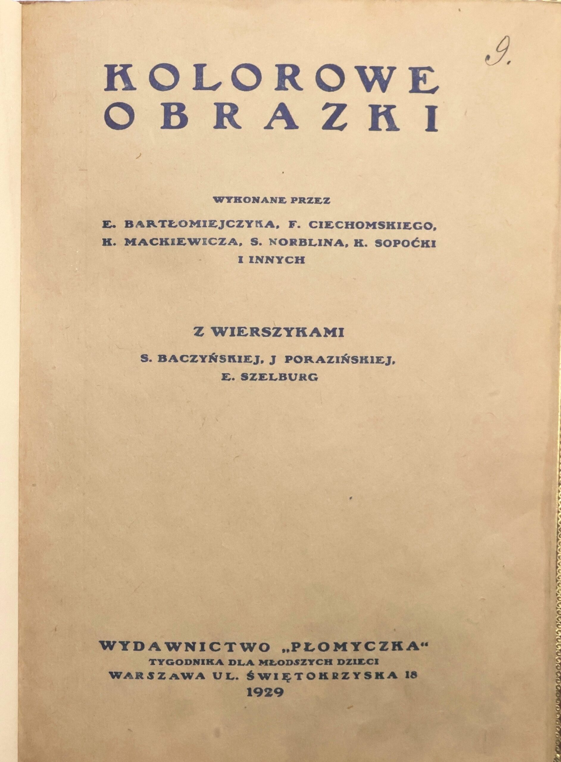 A collection of rhymes for children with paintings by prominent Polish illustrators.