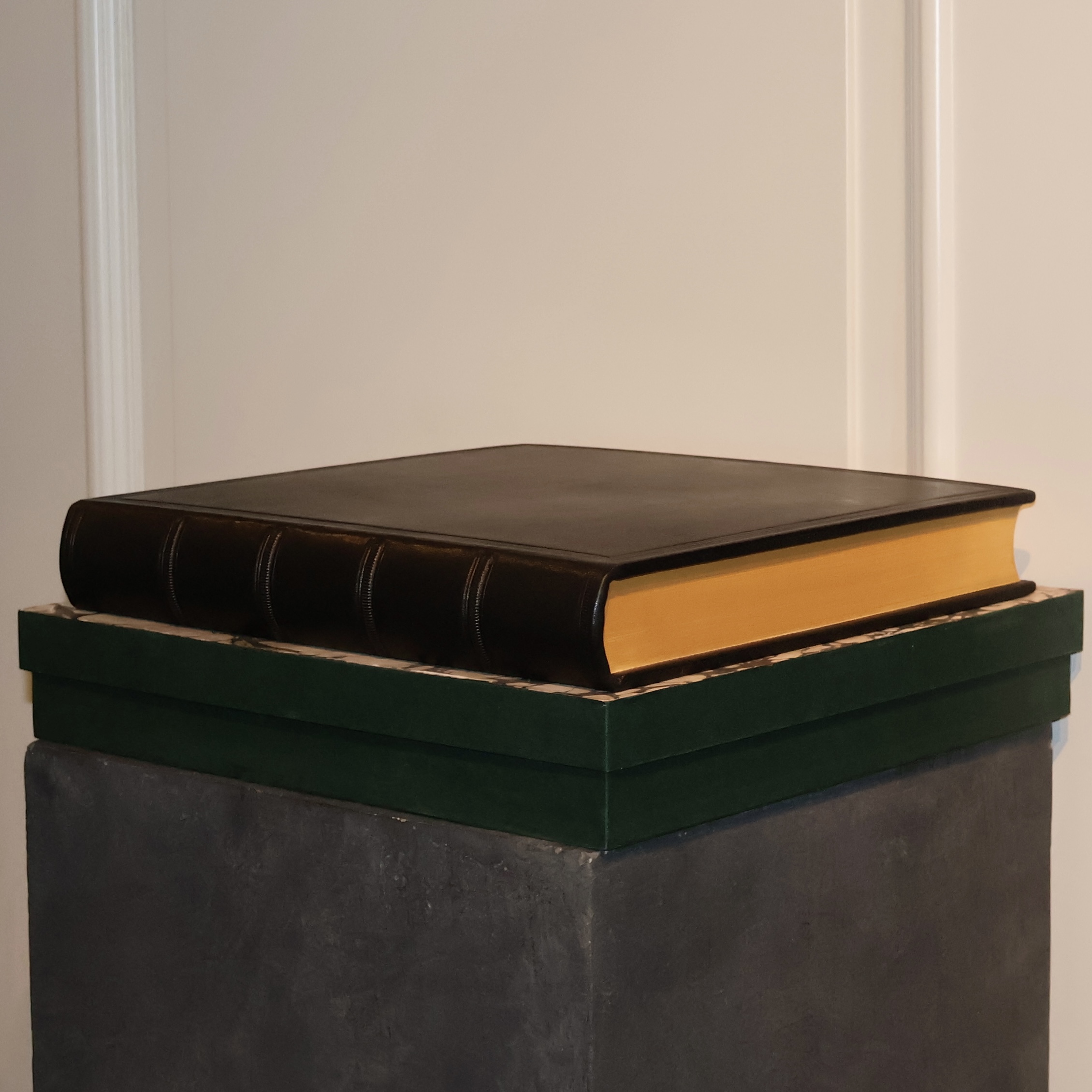 Each piece is created to order and can be fully personalized – we emboss the title, date, dedication, coat of arms or logo. It’s a durable, timeless form of framing memories, created with generations in mind.