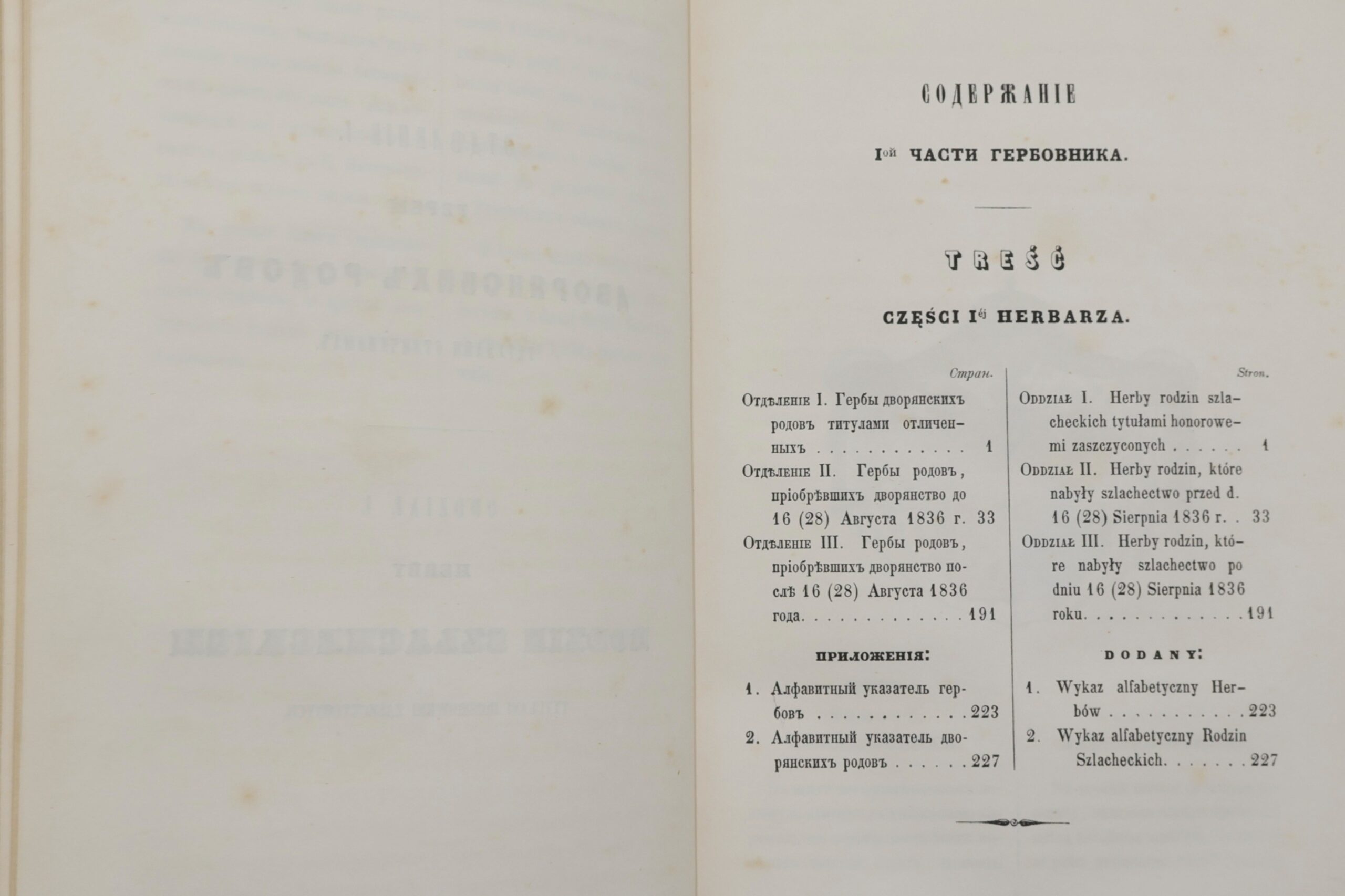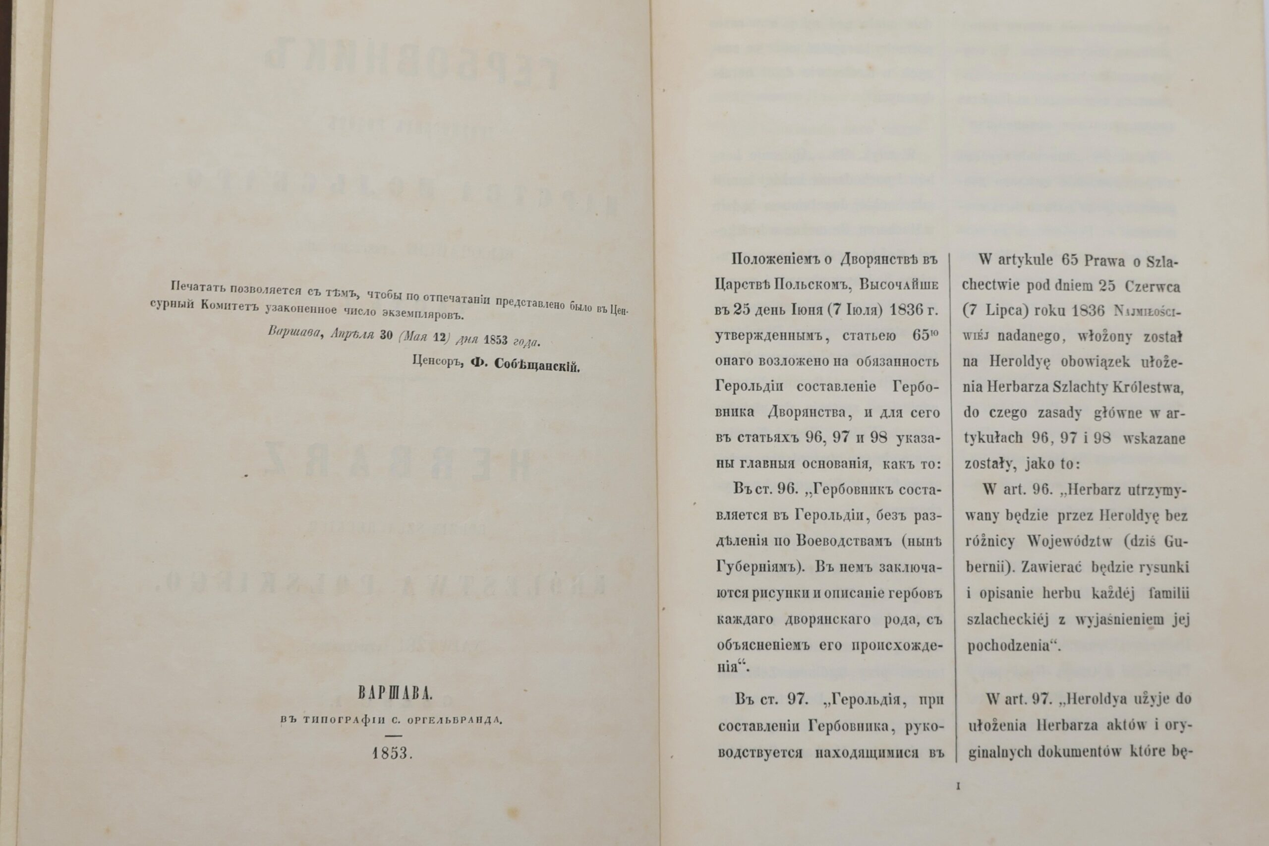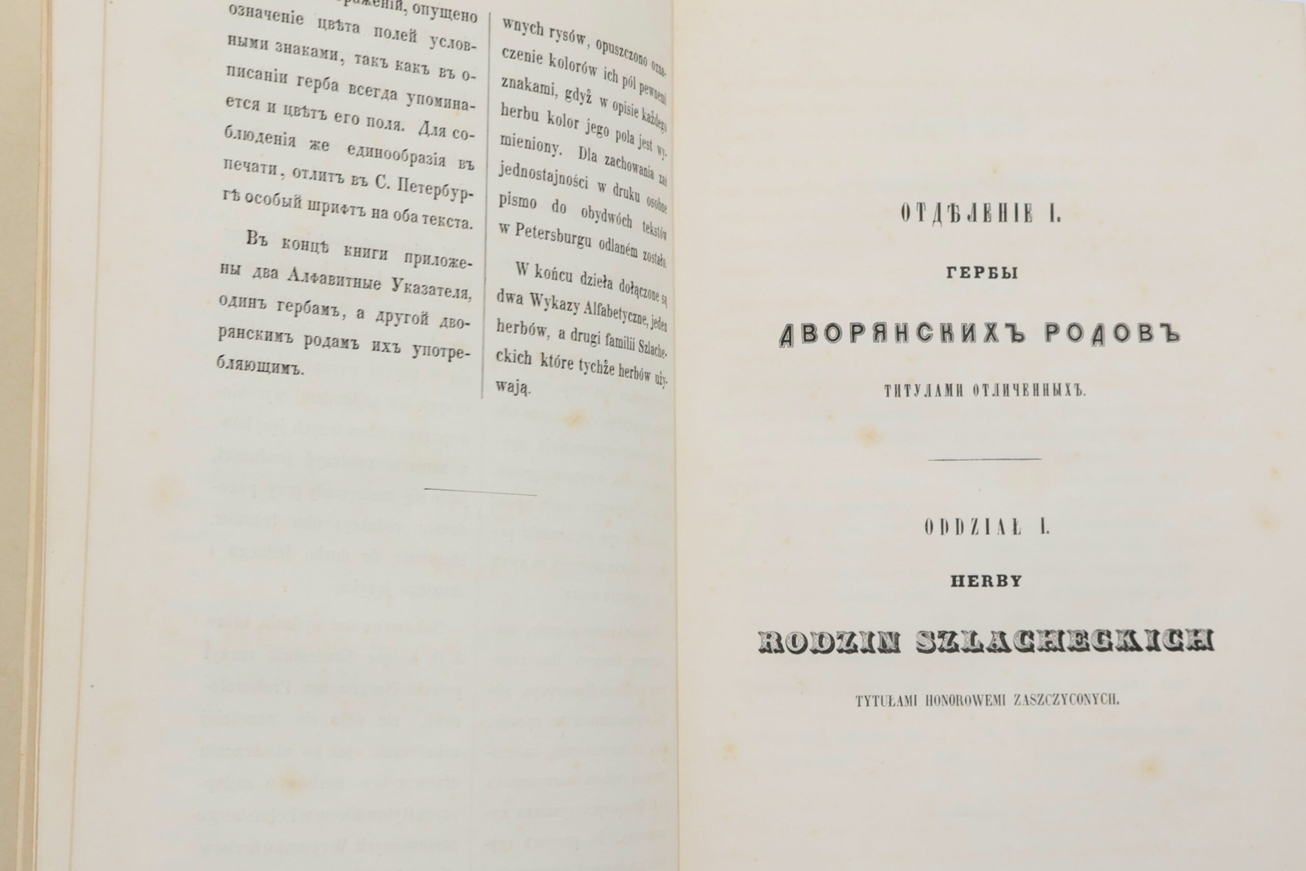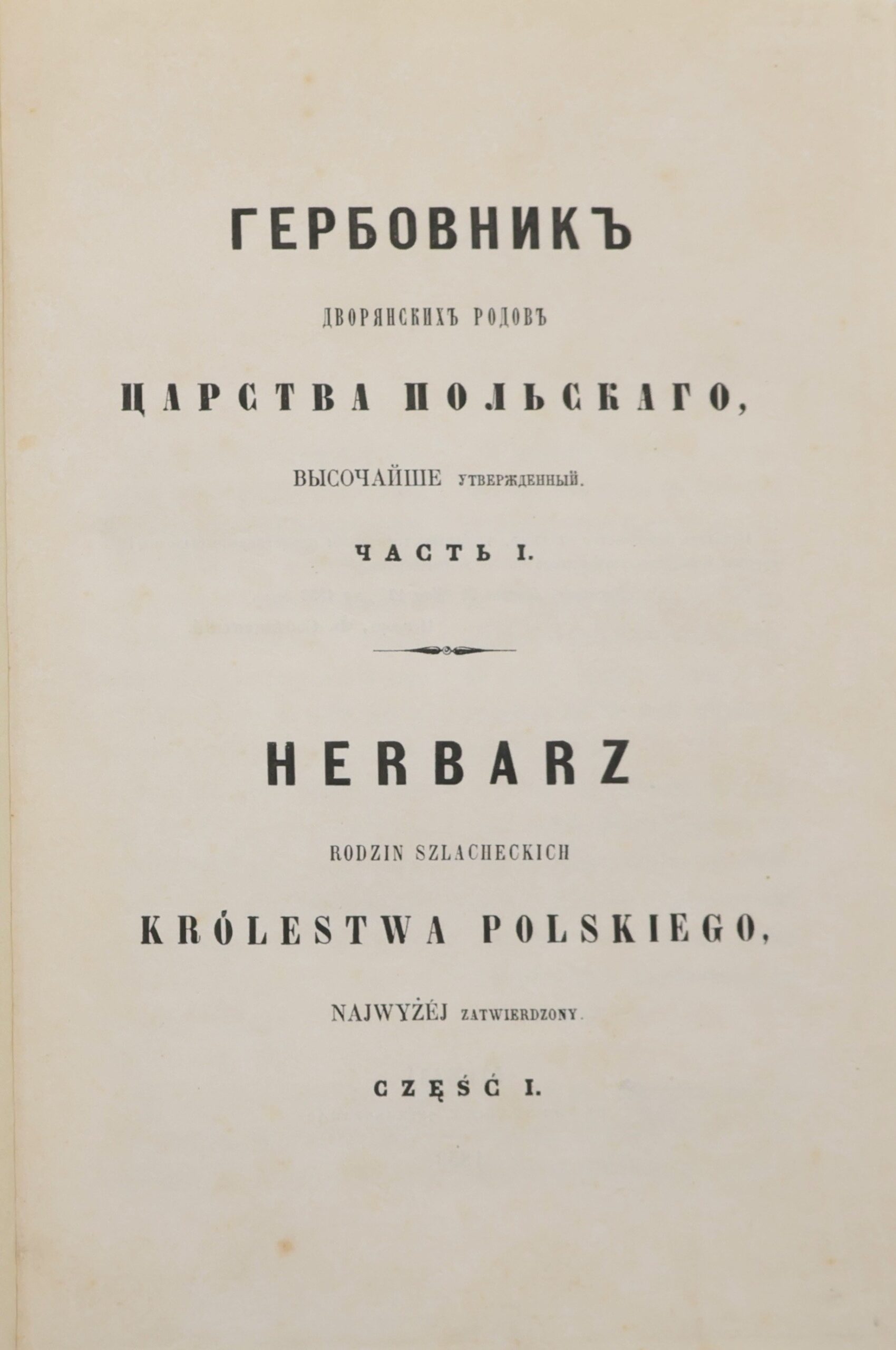 PAVLISHCHEV MIKOŁAJ, HERBARZ RODZIN SZLACHTCKICH KRÓLESTWA POLSKA NAJWYŻEJ ZATWIERDZONY = GERBOVNIK DVORJANSKICH RODOV CARSTVA POL’SKAGO. CZ. I-II W 1 WOL. [1853].