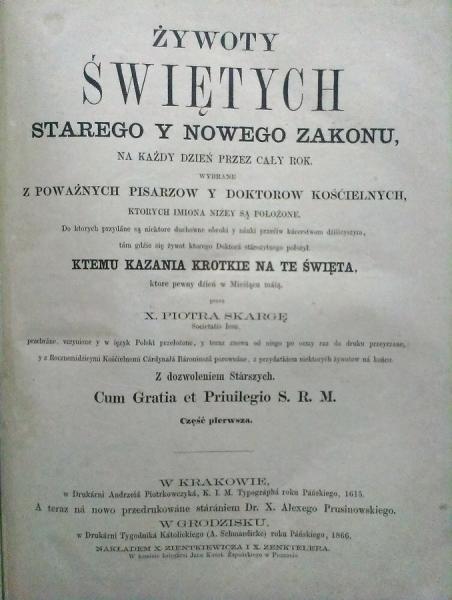 “Lives of the saints of the old and new order for every day throughout the year: selected from the serious writers y doctrines ecclesiastical whose names ni¿y are located. Part I-II in 1 vol.” by Peter Skarga is a classic publication that serves as a spiritual guide for the faithful. Published in 1866 by X. Zientkiewicz and X. Zenkteler in Grodzisk, the book collects biographies of saints to inspire and motivate the faithful to reflect on their values and virtues. Skarga, as a prominent preacher of the turn of the 16th and 17th centuries, passionately portrays the lives of the saints, their martyrdom and virtues, making it not only a religious but also a literary read.