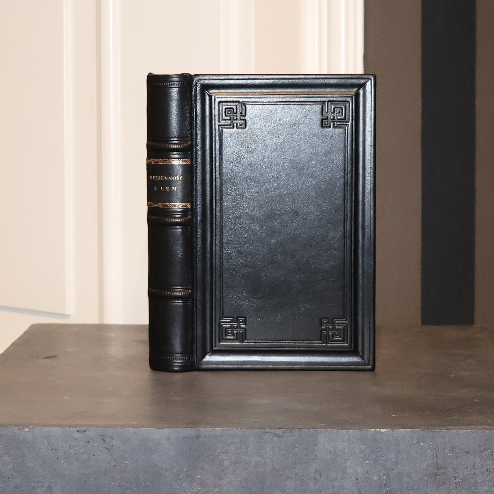 A copy in a luxurious full leather binding from the bindery of the Polish Antiquarian, made of the highest quality natural leather with traditional craftsmanship techniques. What is extremely important for collectors – inside the volume the original publisher’s cover designed by Daniel Mroz has been preserved, ensuring the highest bibliophilic value and durability for generations.