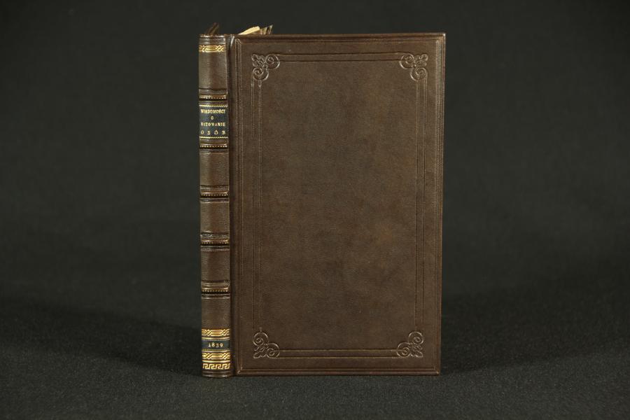 Egzemplarz w bibliofilskiej oprawie skórzanej wykonanej w pracowni Antykwariacie Polskim.