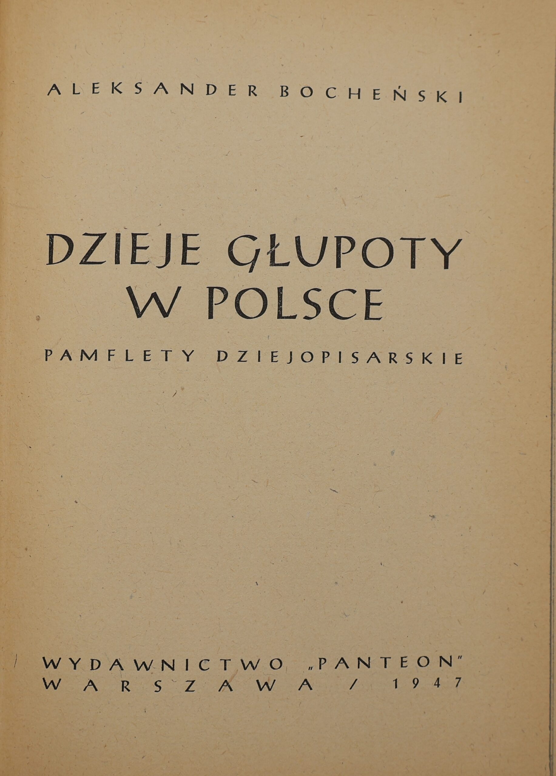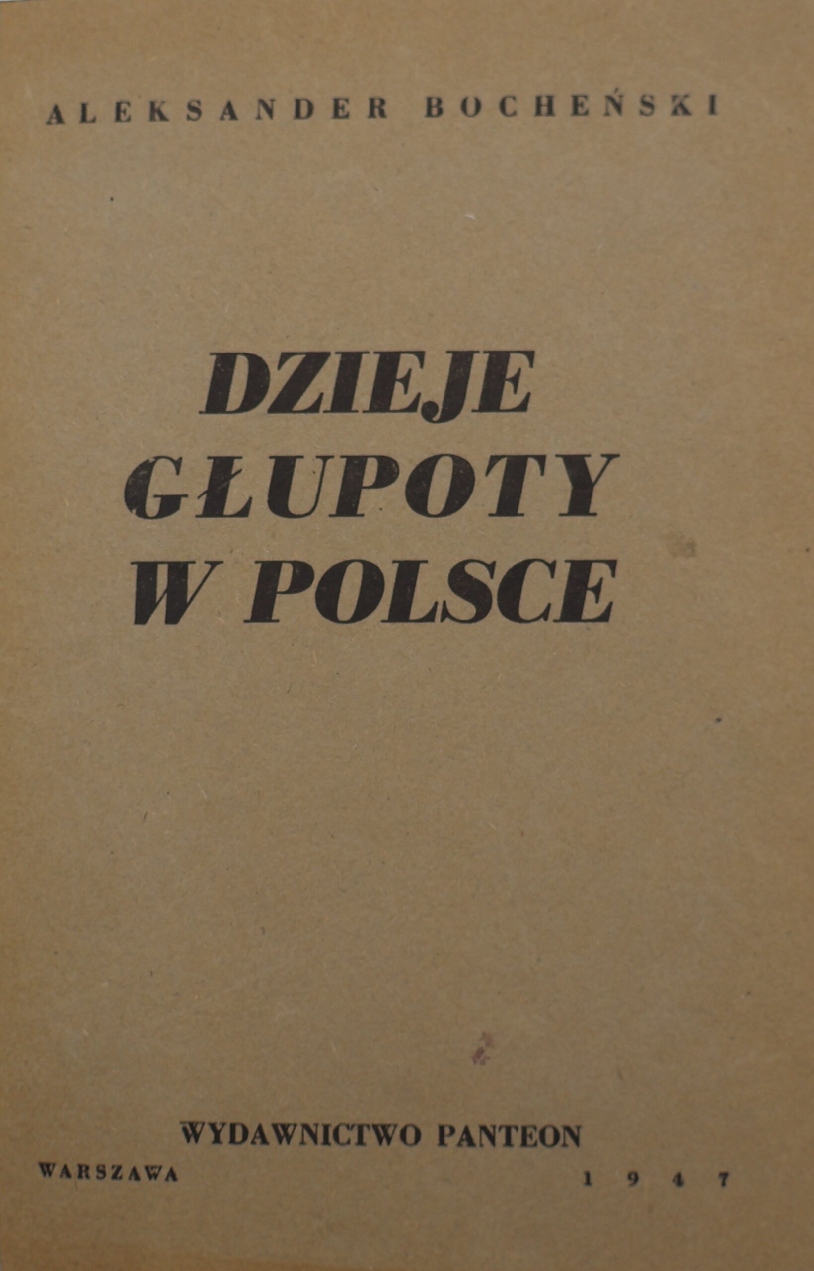 „Dzieje głupoty w Polsce. Pamflety dziejopisarskie” to jedno z najbardziej kontrowersyjnych i błyskotliwych dzieł Aleksandra Bocheńskiego -publicysty, prozaika i myśliciela politycznego, współtwórcy słynnej grupy literackiej „Sztuka i Naród”. Książka, wydana w 1947 roku nakładem wydawnictwa Panteon, stanowi bezkompromisowy, napisany z pasją i erudycją pamflet historyczny, w którym autor demaskuje mechanizmy głupoty, konformizmu i intelektualnego zniewolenia w dziejach Polski.