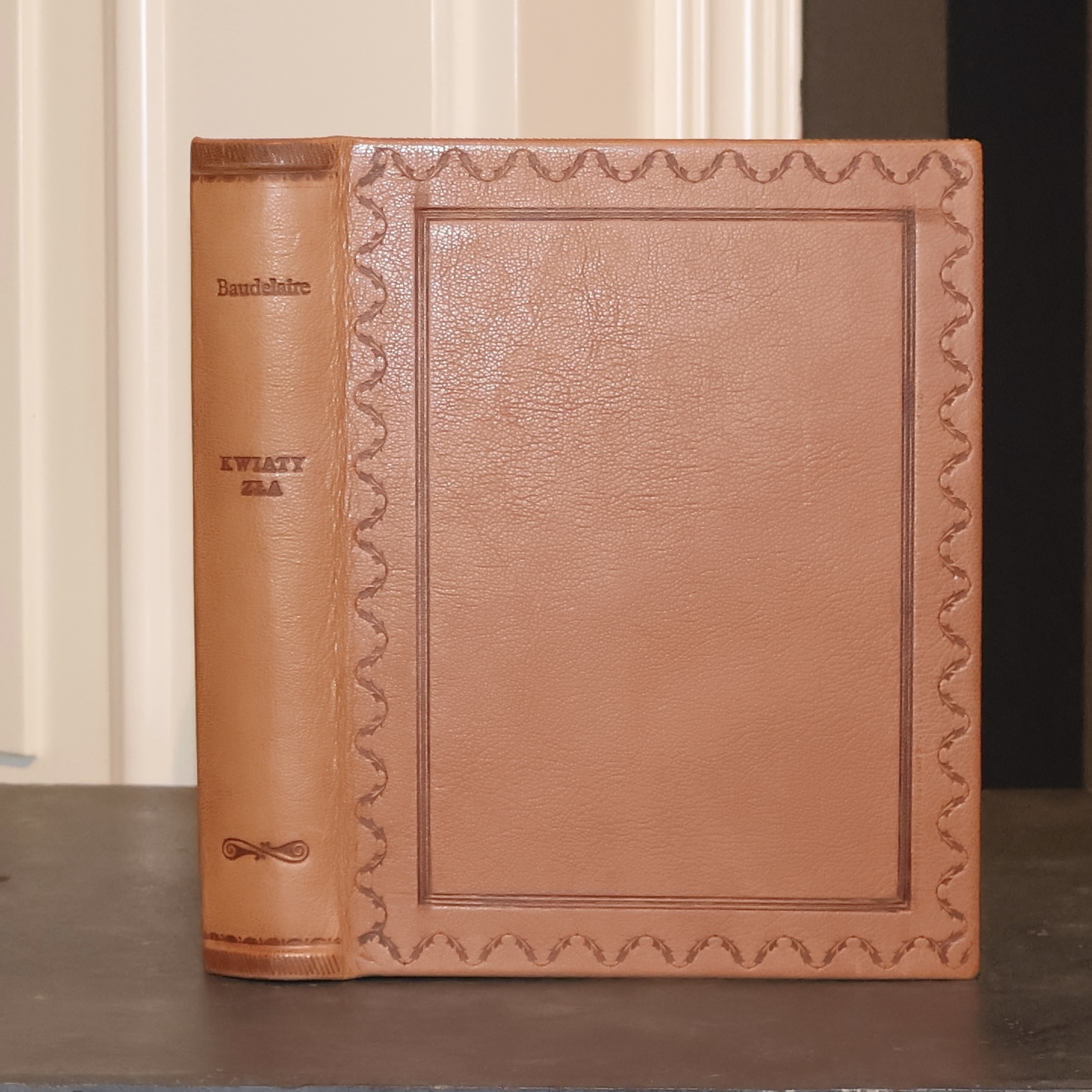 Skórzana oprawa bibliofilska wykonana ręcznie w introligatorni Antykwariatu Polskiego.