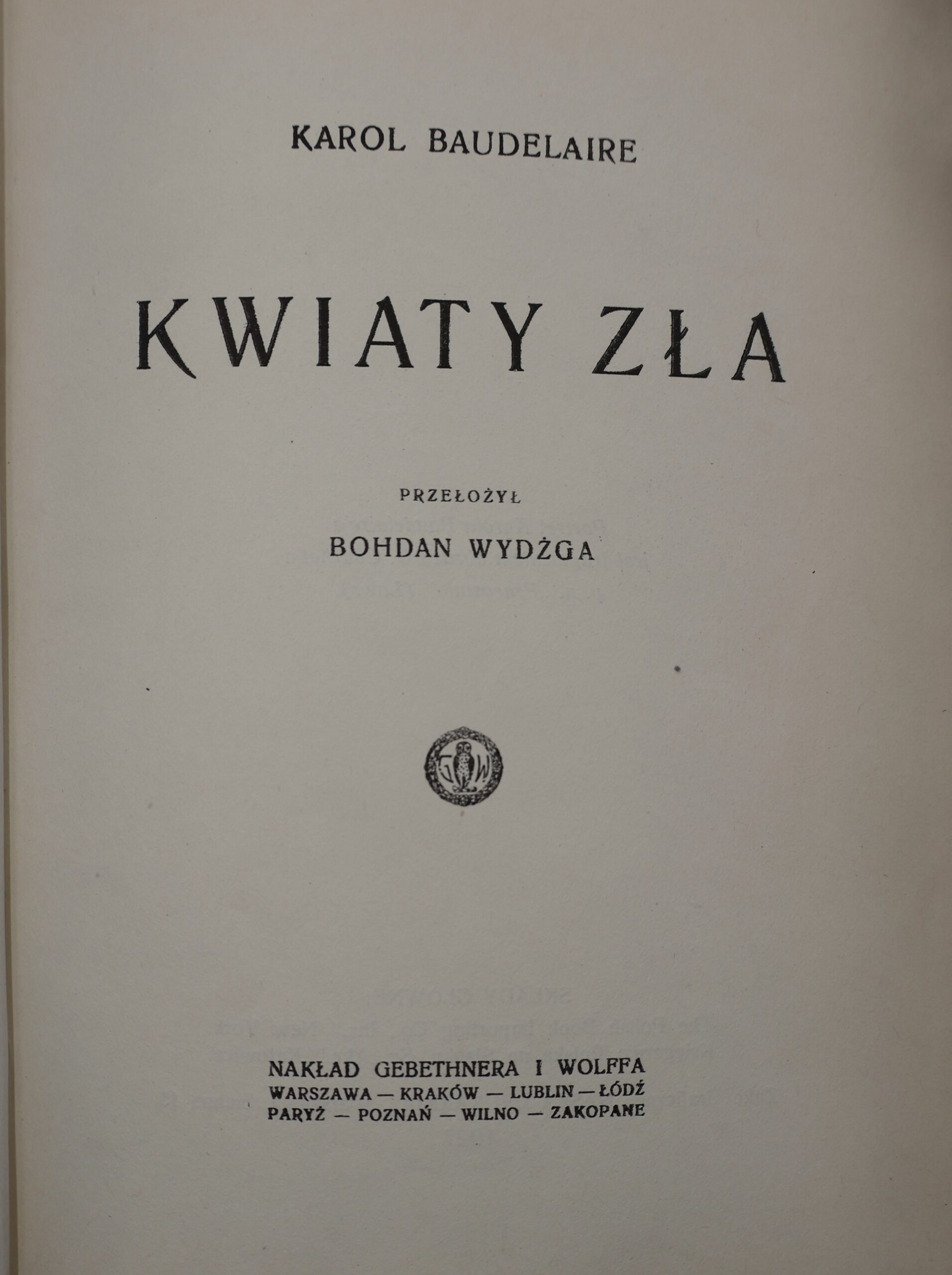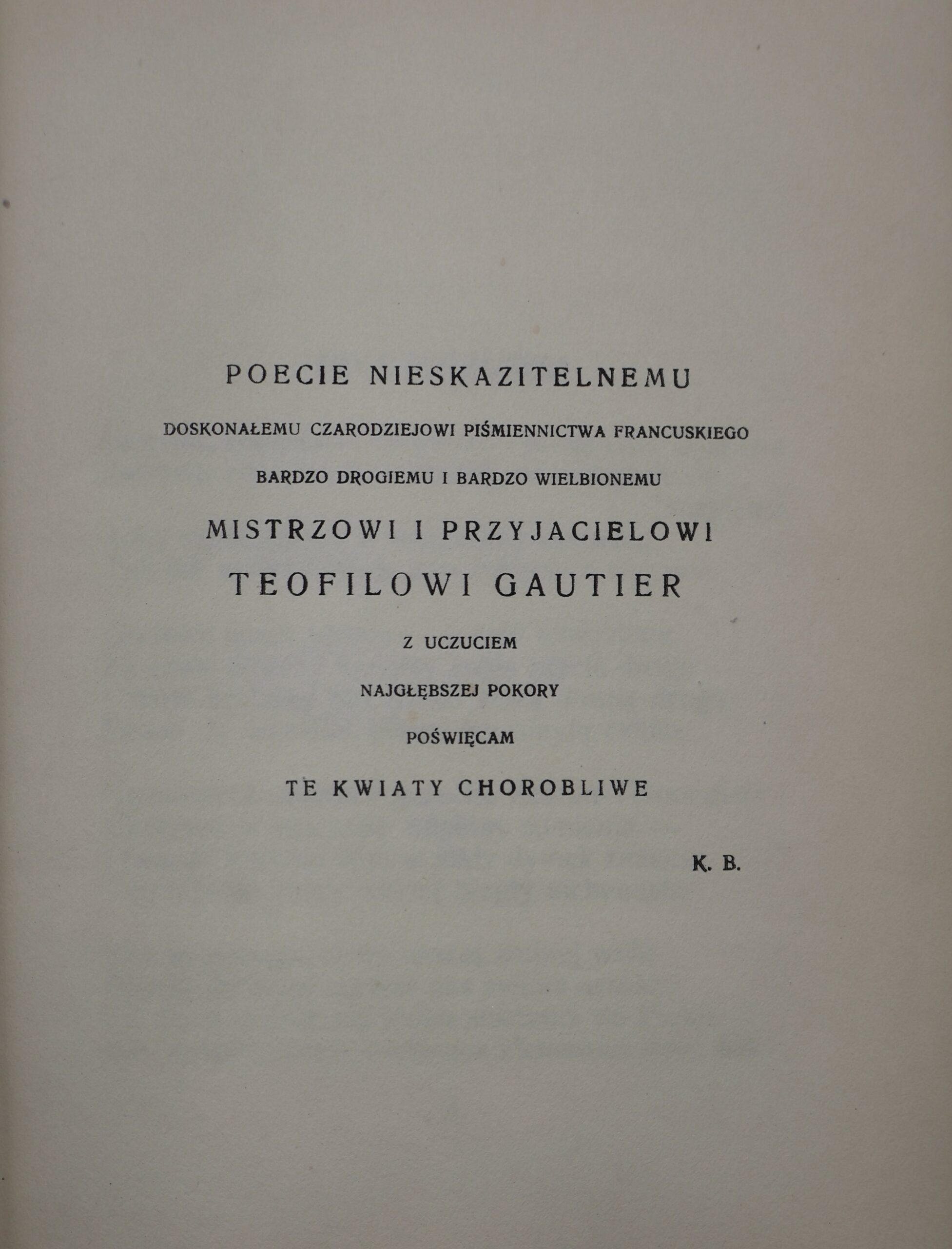 BAUDELAIRE KAROL, KWIATY ZŁA [1927]