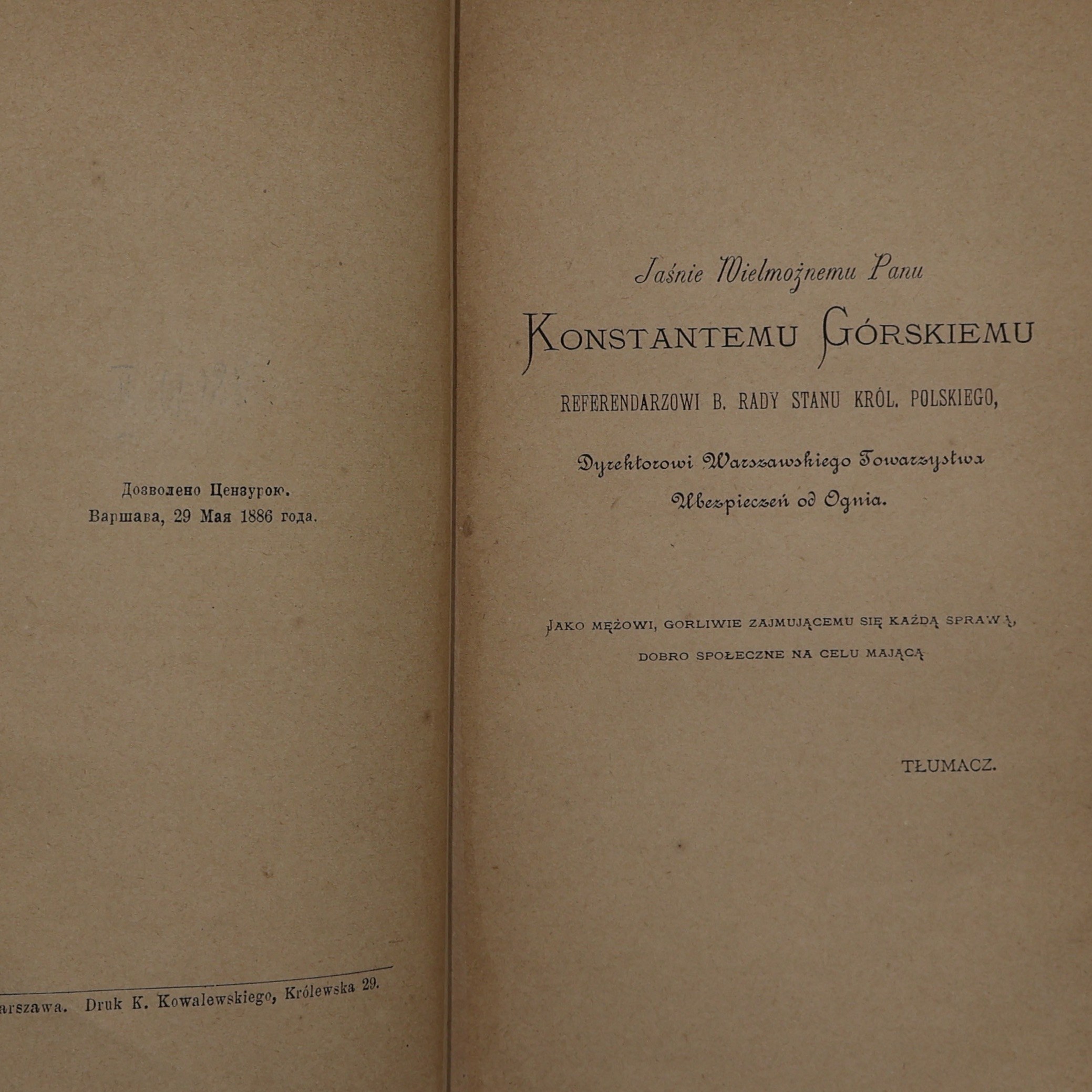 Egzemplarz w bibliofilskiej oprawie skórzanej wykonanej w pracowni Antykwariacie Polskim.