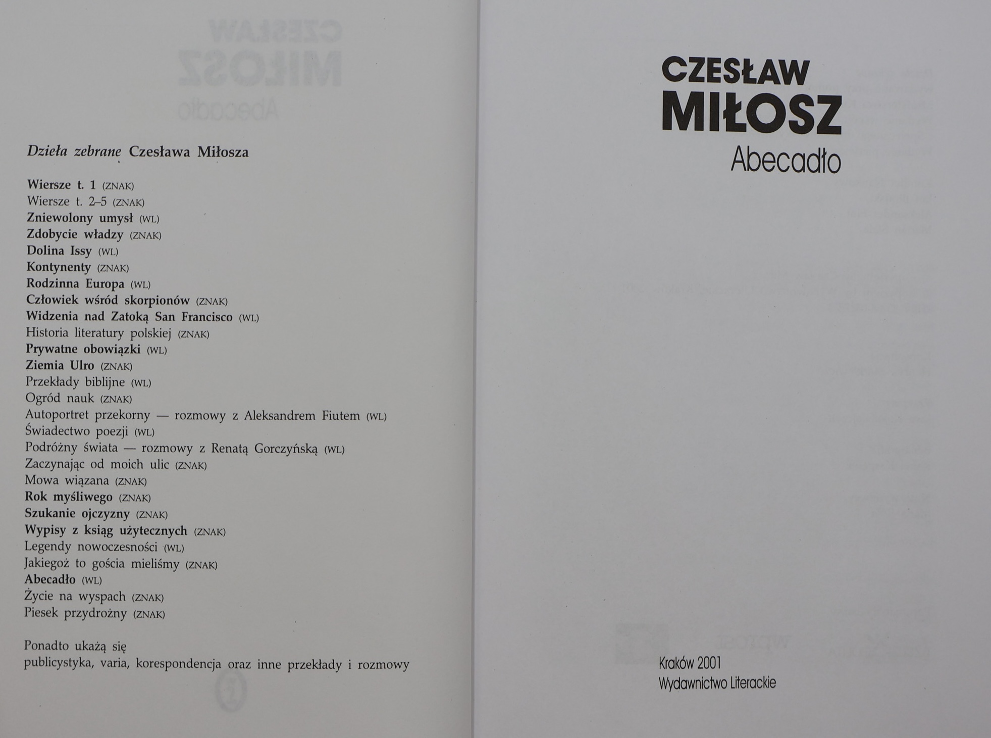 CZESŁAW MIŁOSZ: ABECADŁO [2001]