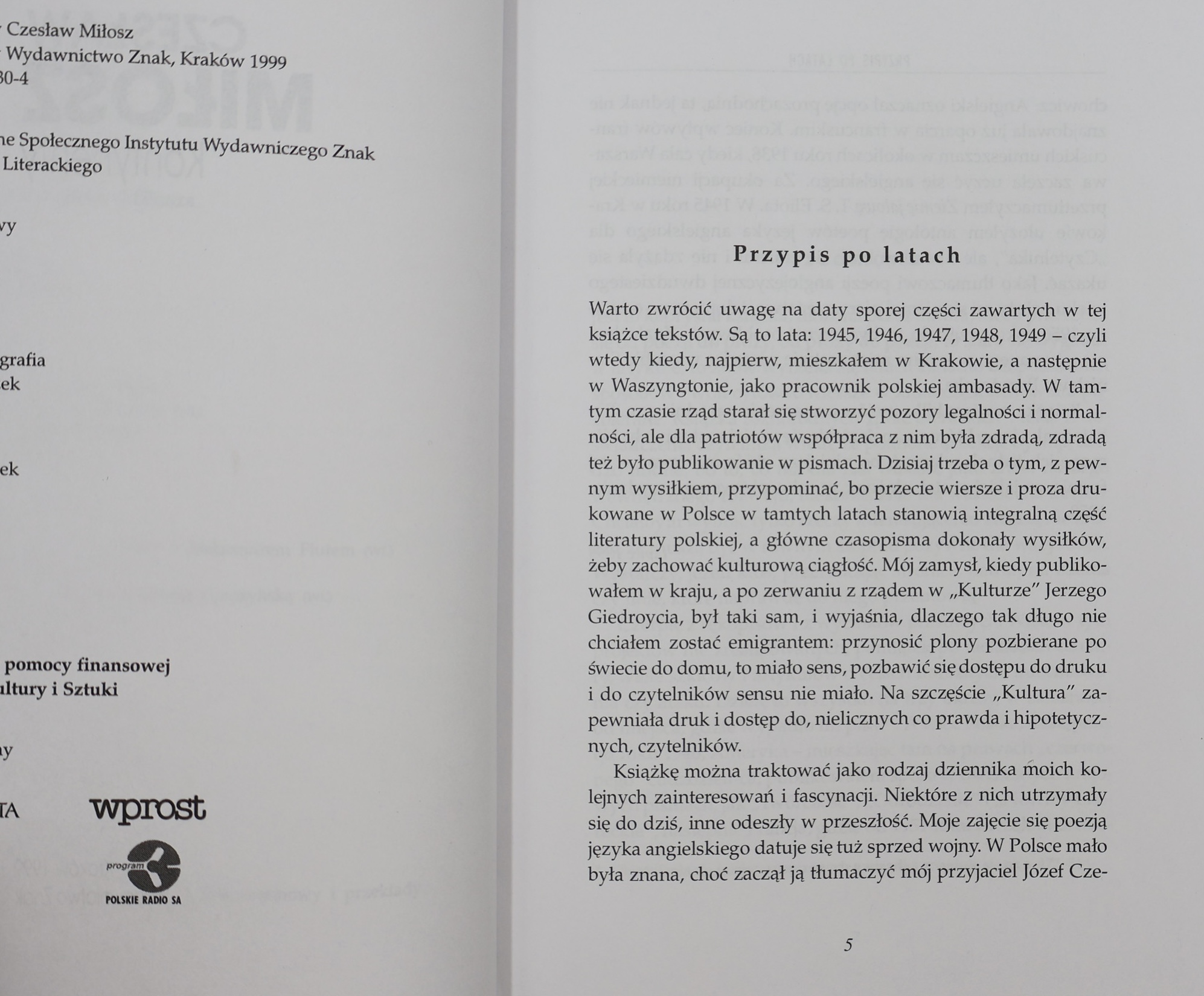 Wydawnictwo Znak (seria Dzieła Zebrane Czesława Miłosza).