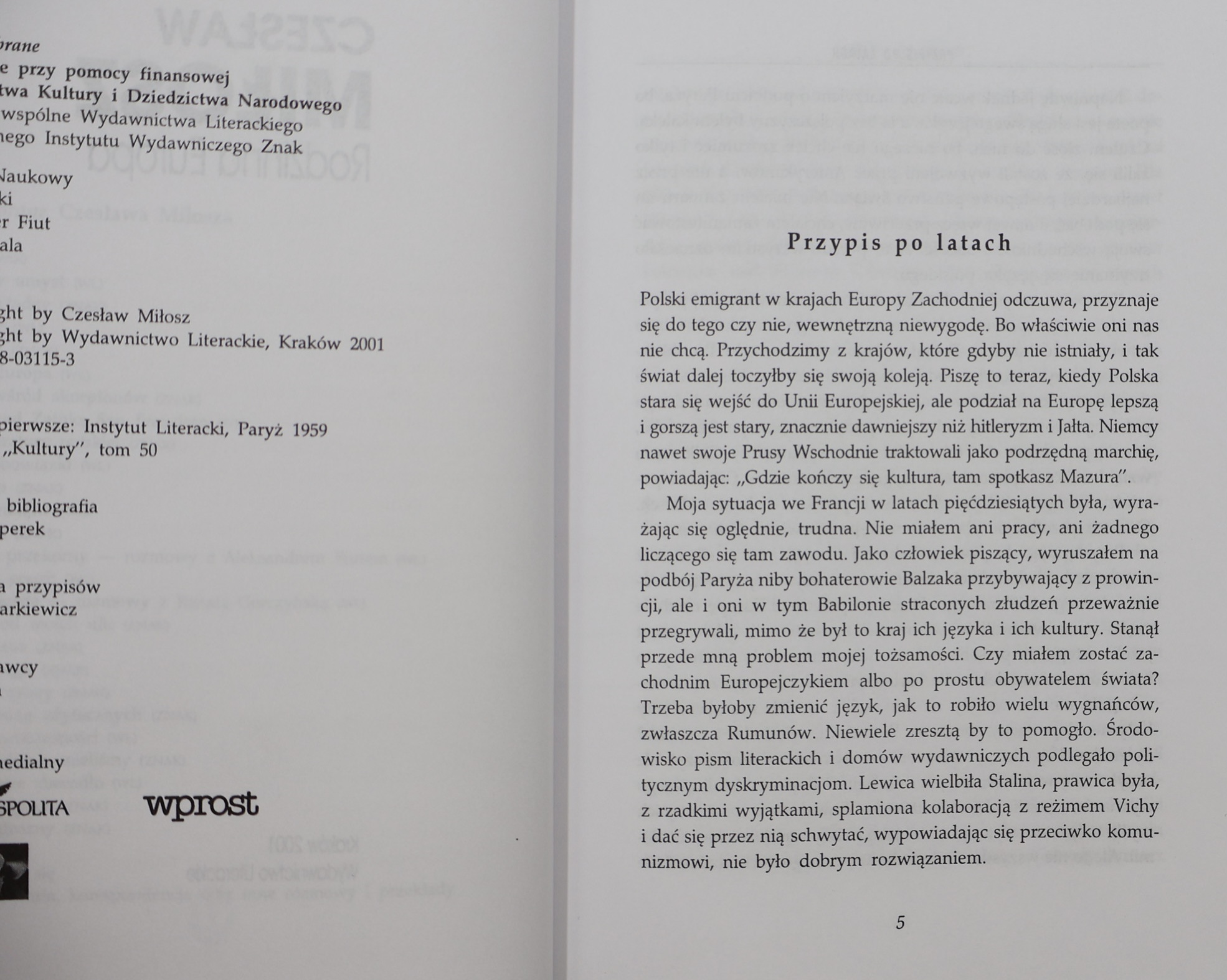Mimo że w katalogach wydanie z 2001 roku sygnowane jest jako „Wyd. 1” , a pierwsze wydanie tej książki pochodzi z 1959 roku. Prezentowany egzemplarz pochodzi z prestiżowej serii „Dzieła Zebrane”, która ukazywała się w latach 1999–2005 i stanowiła pierwsze tak obszerne i kompletne wydanie utworów noblisty w Polsce po 1989 roku.