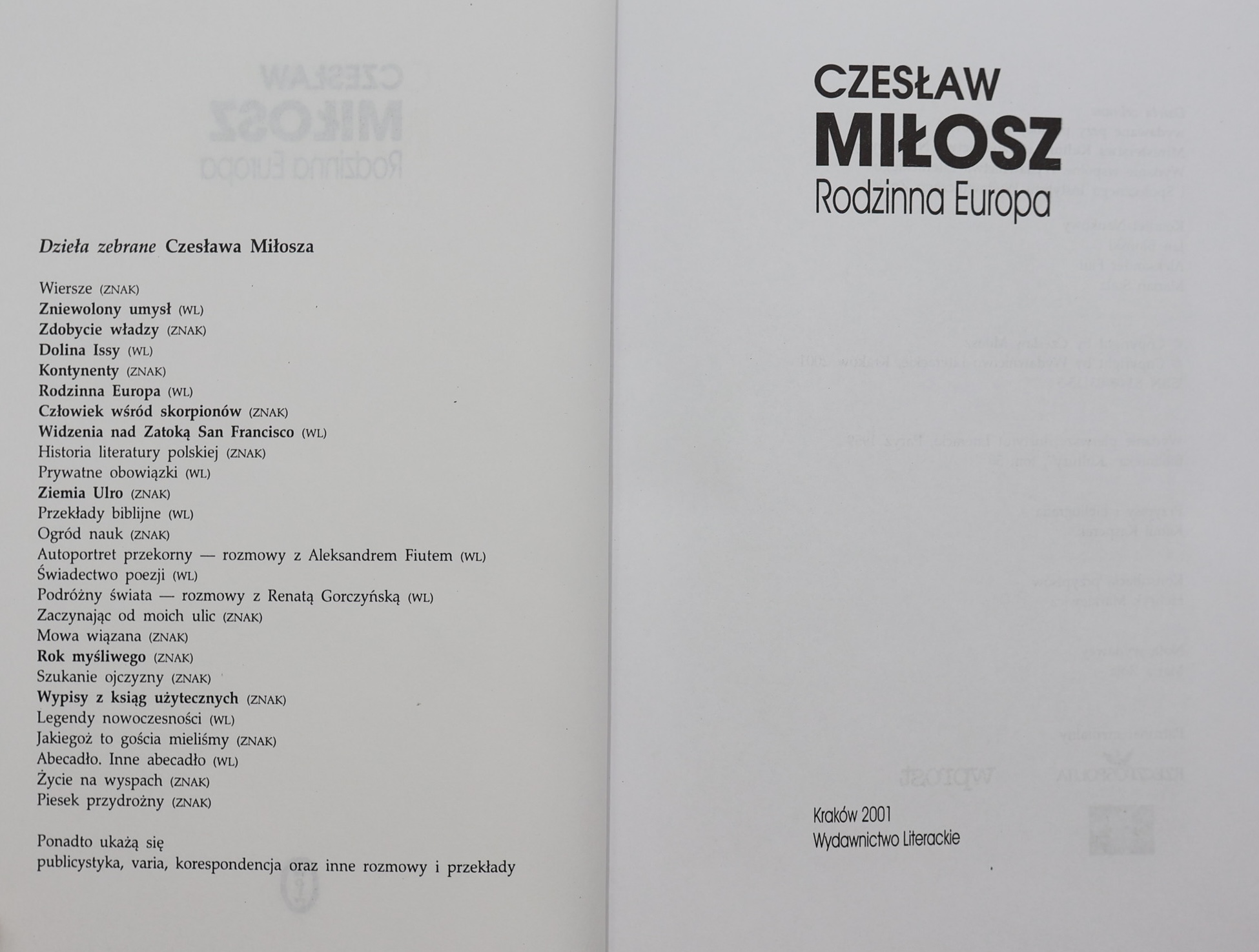 Wydawnictwo Literackie (seria Dzieła Zebrane Czesława Miłosza).