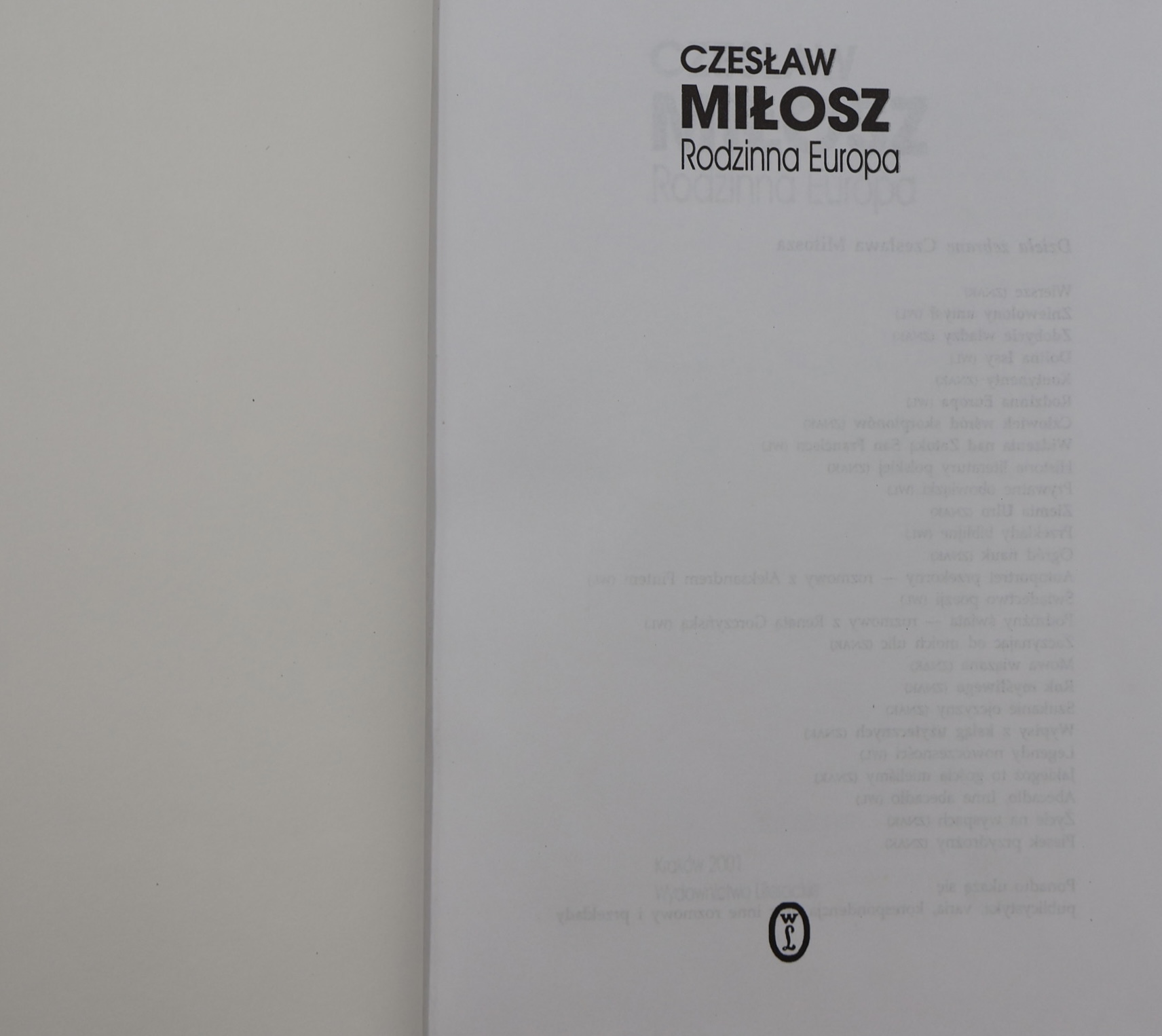 Prezentujemy wydanie „Rodzinnej Europy” Czesława Miłosza (1911–2004) – poety, prozaika, eseisty, laureata literackiej Nagrody Nobla (1980), jednego z najwybitniejszych intelektualistów polskich XX wieku. Publikacja ukazała się w 2001 roku w Krakowie nakładem Wydawnictwa Literackiego jako część prestiżowej serii „Dzieła Zebrane Czesława Miłosza” .