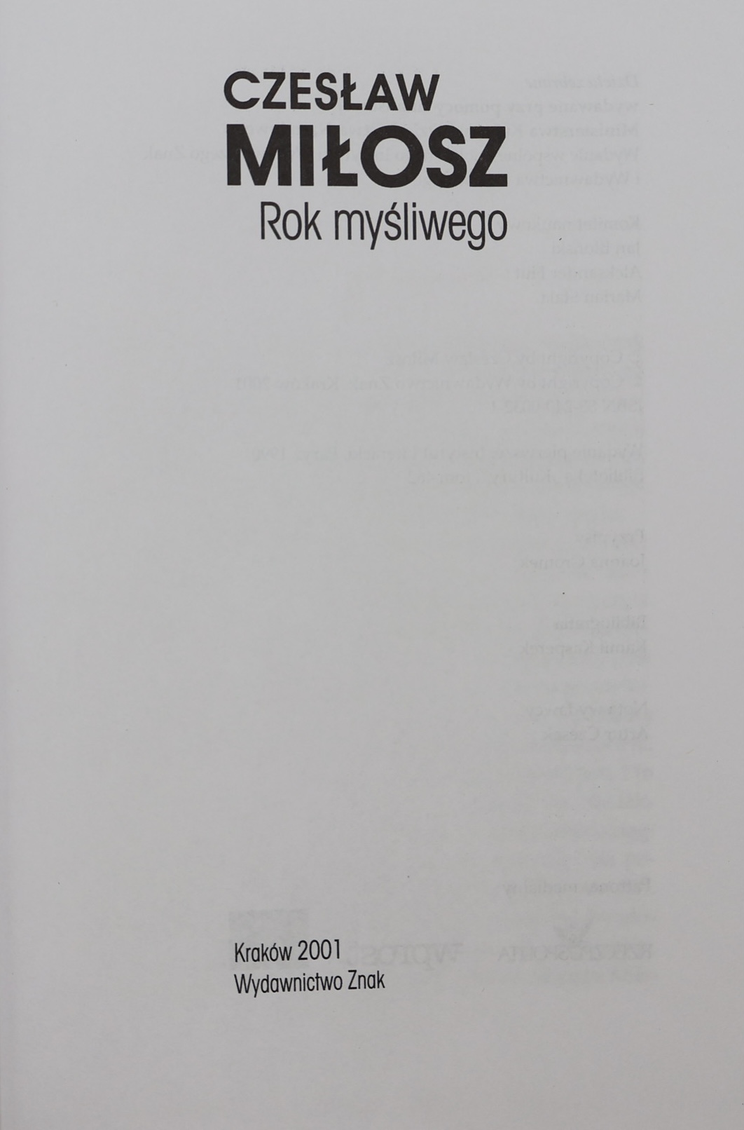 CZESŁAW MIŁOSZ: ROK MYŚLIWEGO [2001]