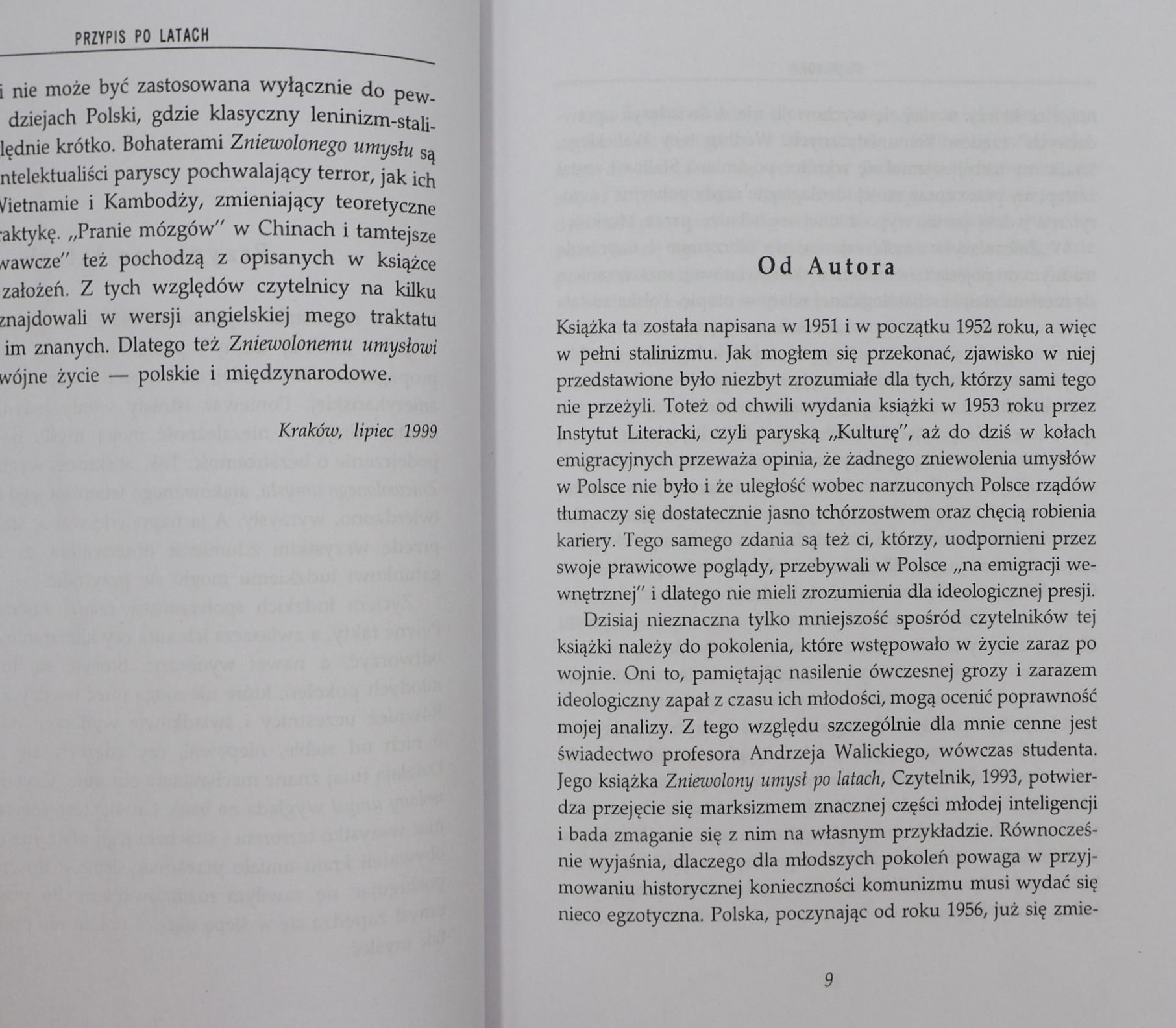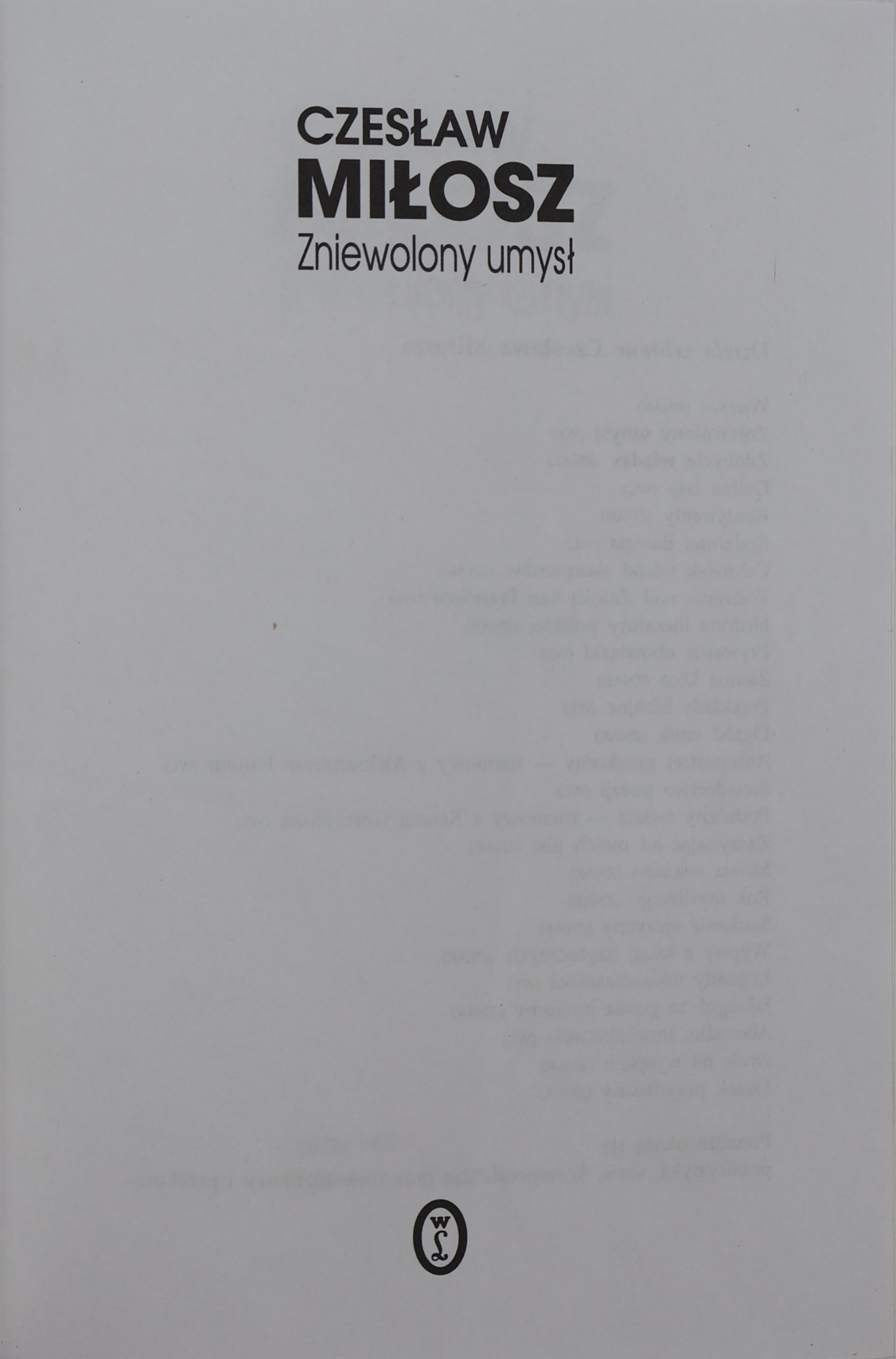 Prezentujemy wydanie „Zniewolonego umysłu” Czesława Miłosza (1911–2004) – poety, prozaika, eseisty, laureata literackiej Nagrody Nobla (1980), jednego z najwybitniejszych i najbardziej wpływowych intelektualistów polskich XX wieku. Publikacja ukazała się w 1999 roku w Krakowie nakładem Wydawnictwa Literackiego jako część prestiżowej serii „Dzieła Zebrane Czesława Miłosza”.