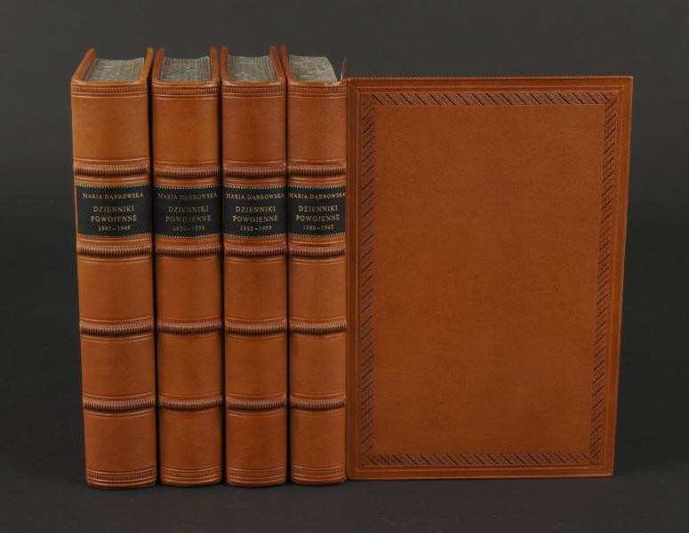 Elegancka, ręcznie wykonana skórzana oprawa od Introligatorni Antykwariatu Polskiego dodaje książce prestiżowego i trwałego charakteru. Posiadanie „Dzienników powojennych” w swojej bibliotece to nie tylko inwestycja w literaturę i historię, ale także wyraz zaangażowania w zachowanie kulturowego dziedzictwa, które może być przekazywane z pokolenia na pokolenie jako cenny skarb rodzinny.