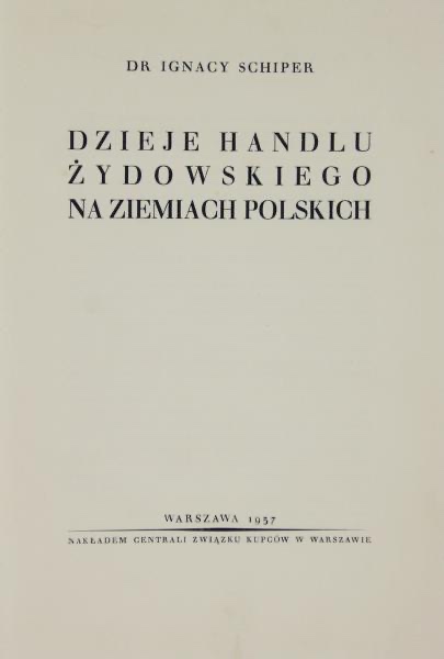 Dzieje handlu Żydowskiego na ziemiach Polskich – Ignacy Schiper