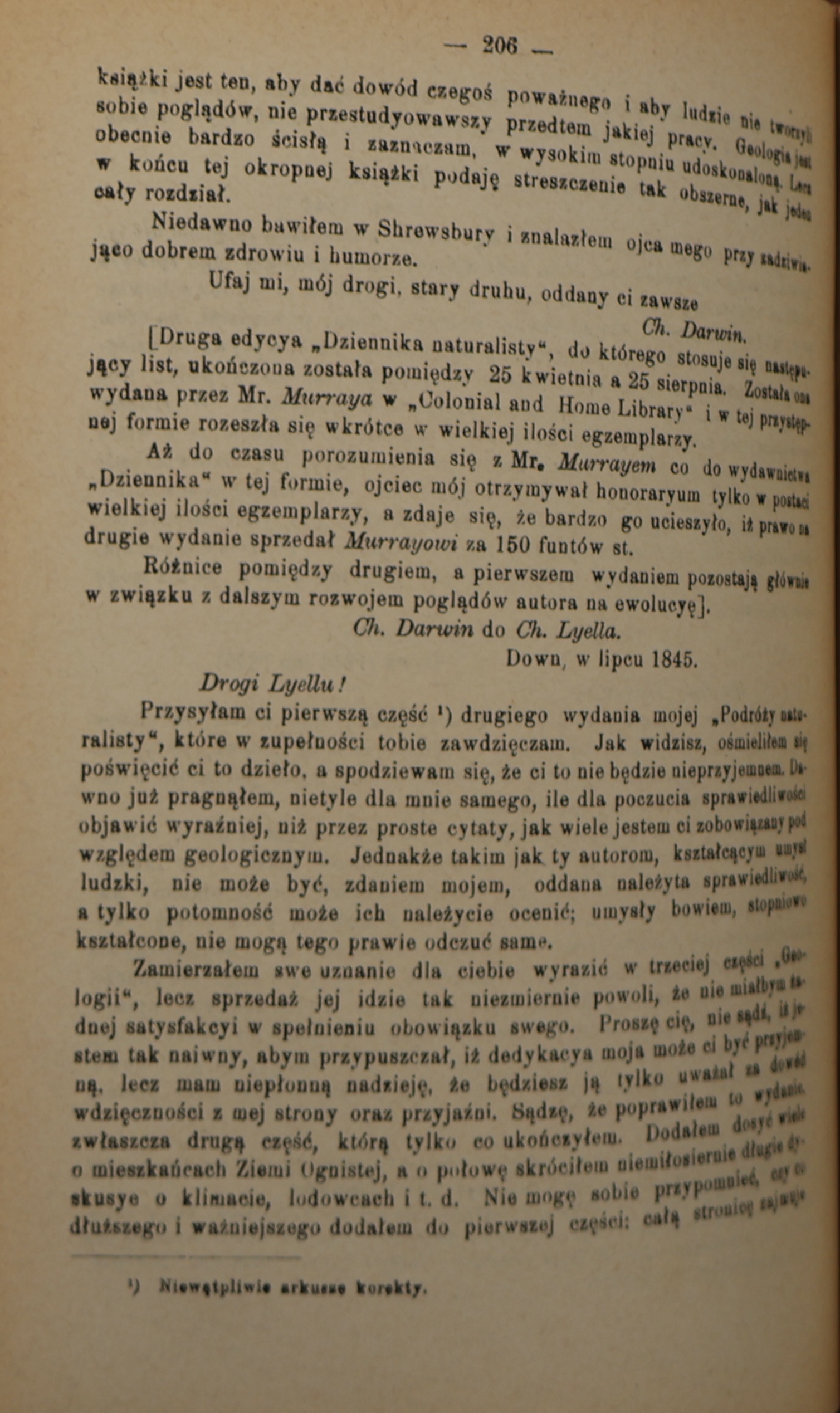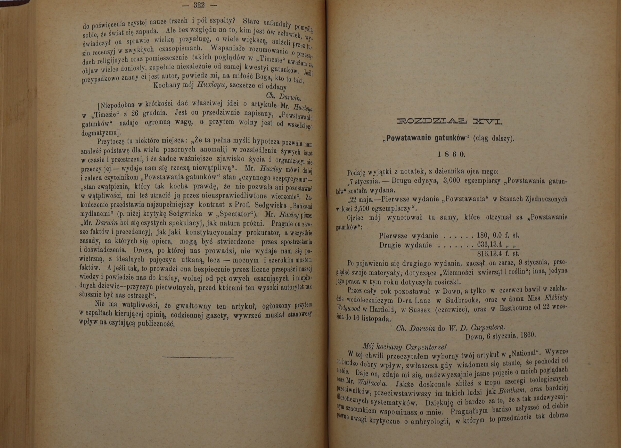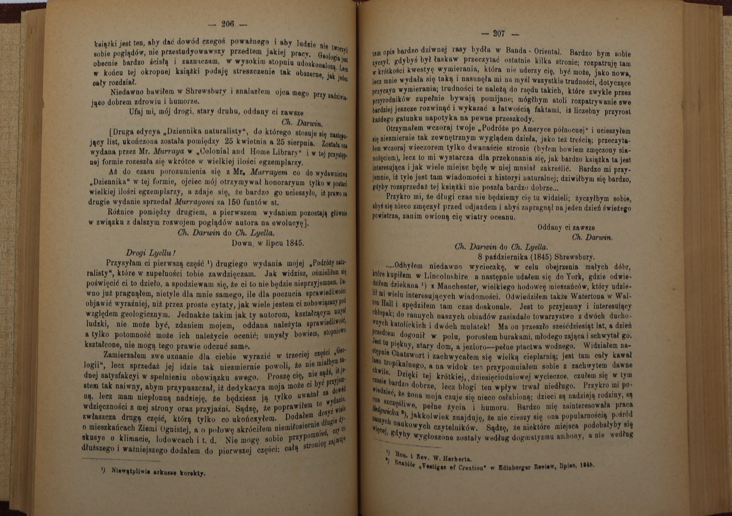 To pierwsze polskie wydanie autobiografii Karola Darwina, jednego z najwybitniejszych uczonych w dziejach ludzkości, stanowi niezwykle cenny dokument epoki i rzadkość na rynku antykwarycznym . Książka została wydana w 1891 roku nakładem warszawskiego Wydawnictwa „Przeglądu Tygodniowego” w przekładzie wybitnego biologa Józefa Nusbauma-Hilarowicza .