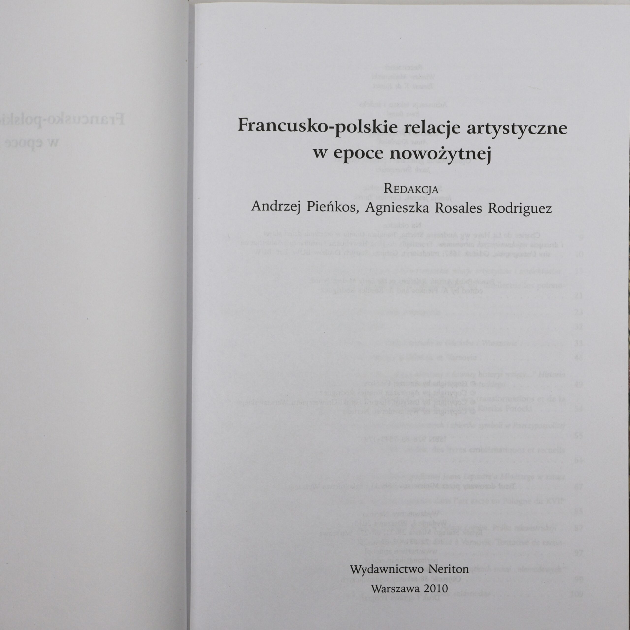 Publikacja poświęcona relacjom artystycznym między Francją a Polską w epoce nowożytnej. Autorzy analizują transfer idei, stylów i wzorców artystycznych, a także wzajemne oddziaływania środowisk twórczych, mecenasów i instytucji artystycznych. Książka obejmuje zagadnienia z zakresu historii sztuki, kultury dworskiej oraz kontaktów międzynarodowych, ukazując rolę Francji jako jednego z kluczowych punktów odniesienia dla rozwoju sztuki na ziemiach polskich.
