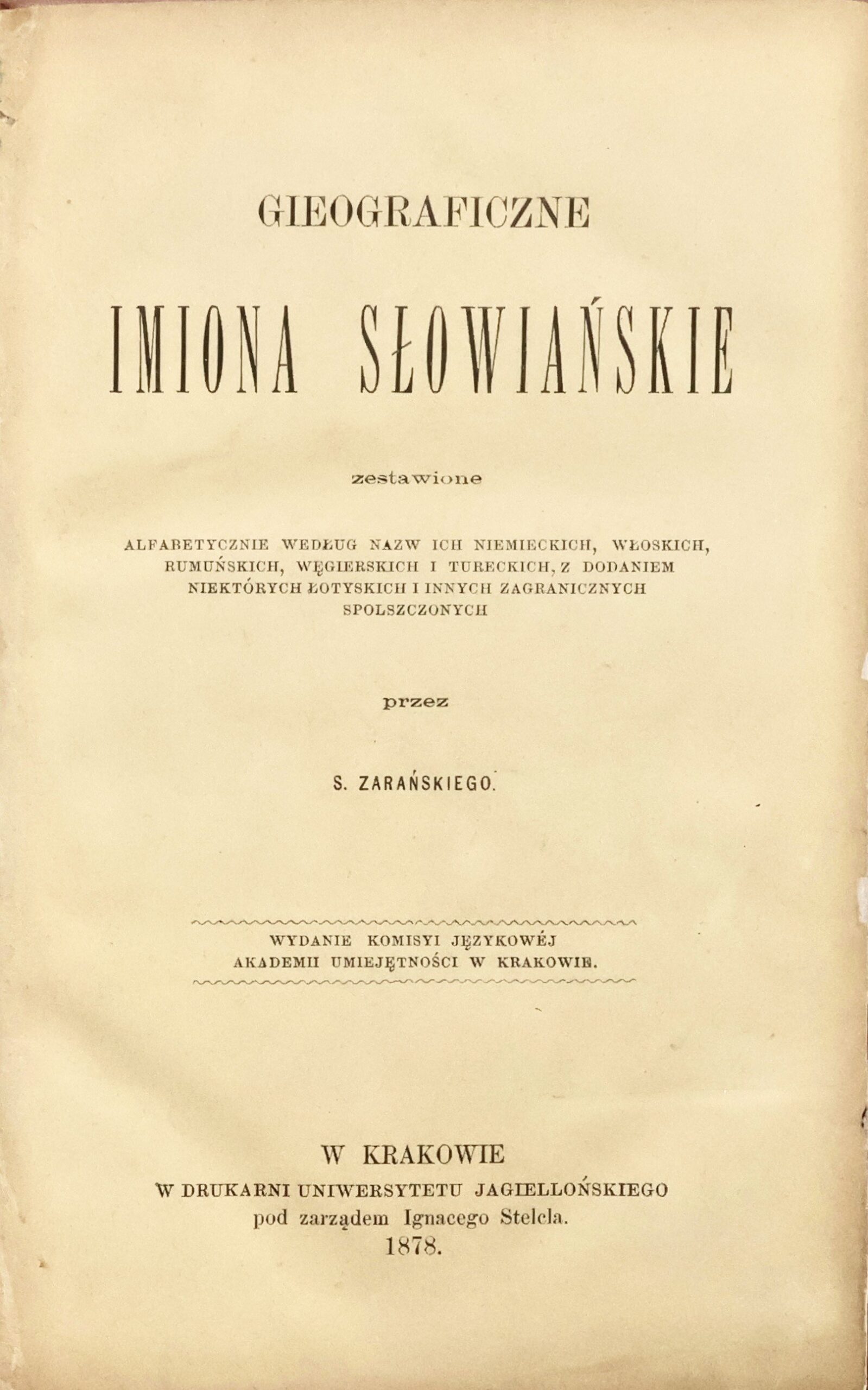 1878, Kraków, Druk. Uniwersytetu Jagiellońskiego
