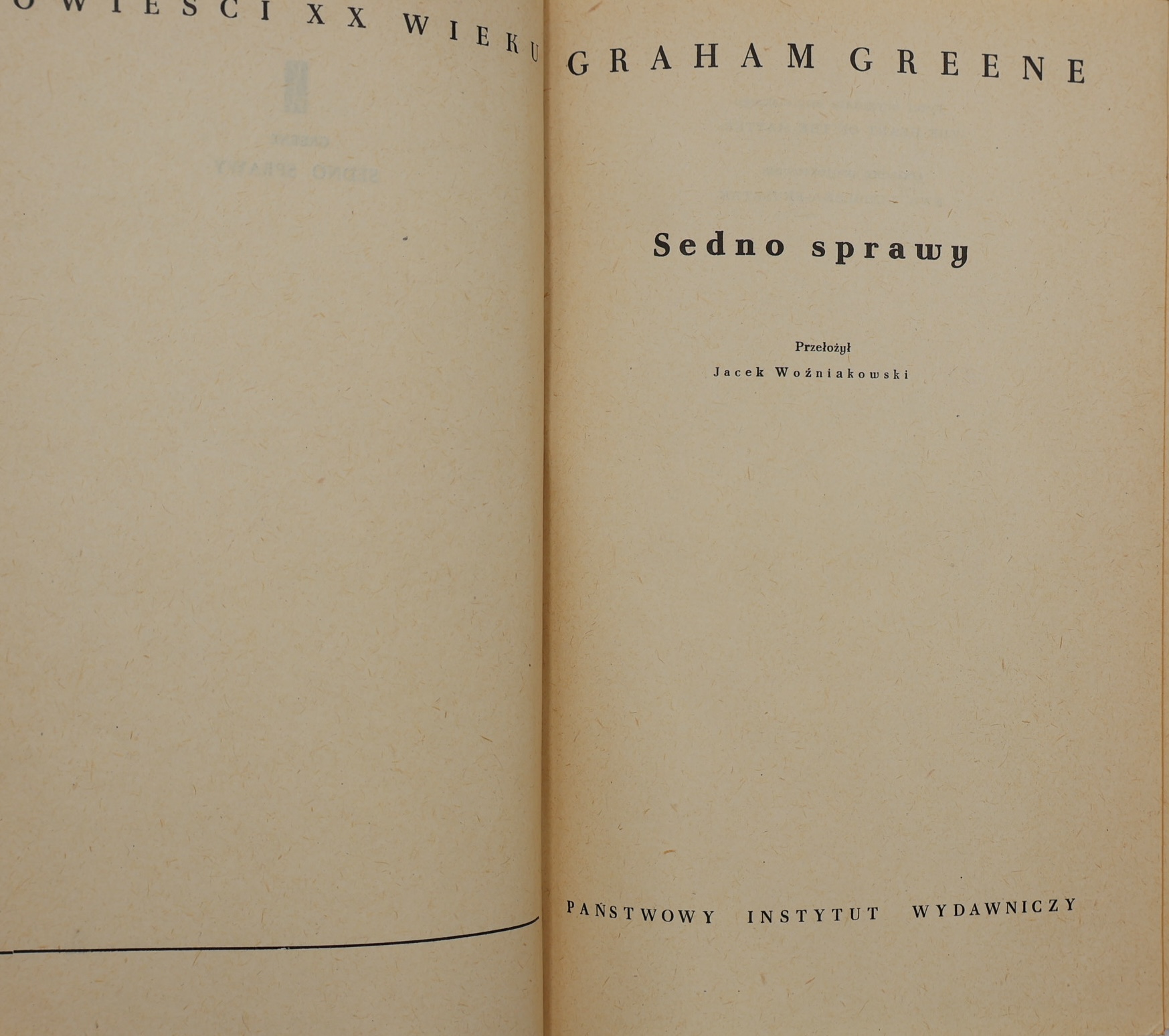 Prezentujemy pierwsze polskie wydanie jednej z najsłynniejszych powieści Grahama Greene’a (1904–1991) – wybitnego brytyjskiego pisarza, autora powieści psychologicznych, szpiegowskich i politycznych, wielokrotnie nominowanego do Nagrody Nobla. Publikacja ukazała się w 1958 roku w Warszawie nakładem Państwowego Instytutu Wydawniczego (PIW) w prestiżowej serii „Powieści XX wieku” .