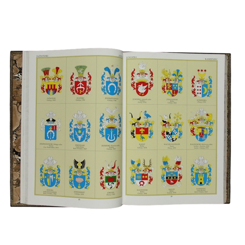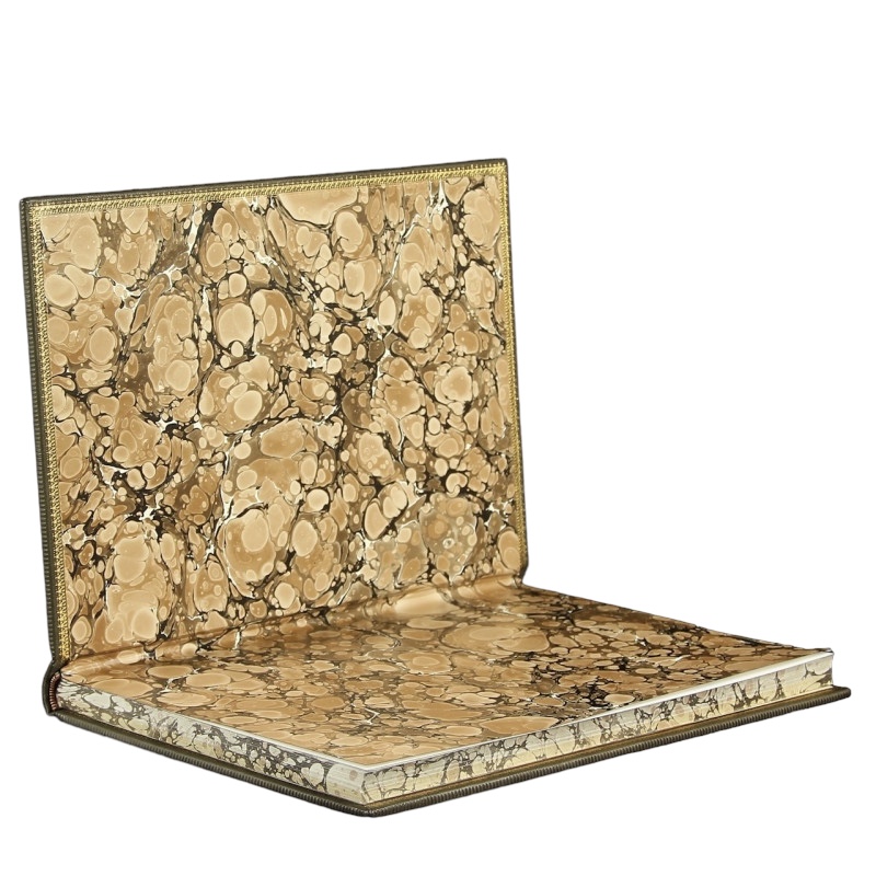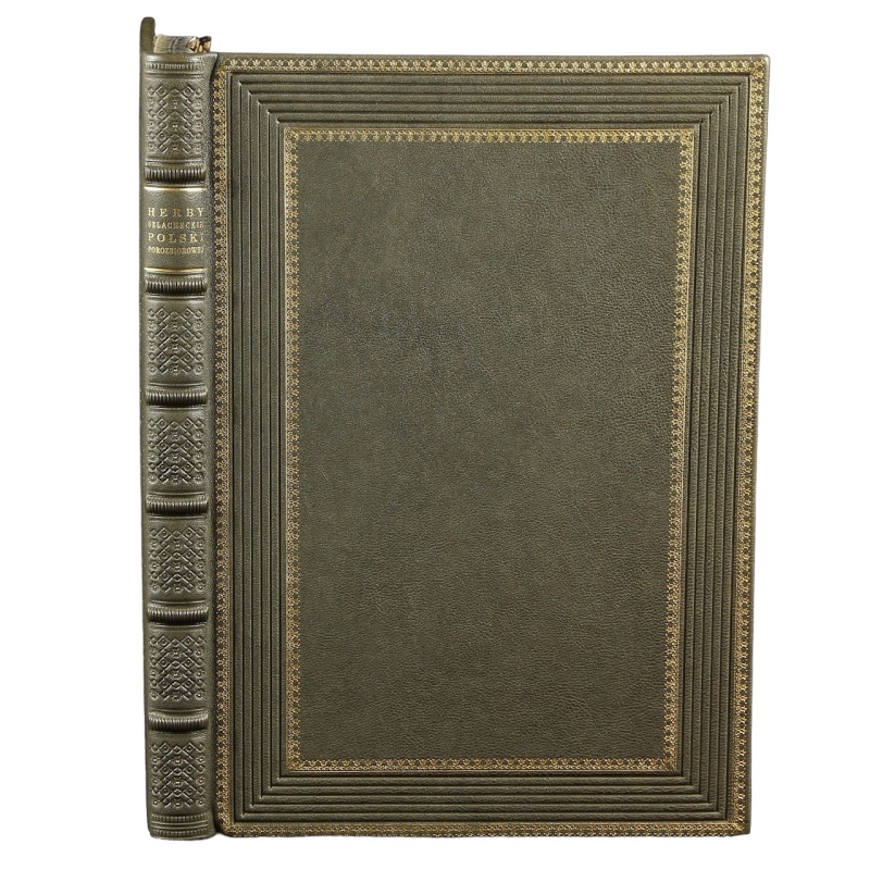 Egzemplarz czysty w bardzo dobrym stanie. Pełna skóra. Dekoracyjne, suche i złocone tłoczenia na polach grzbietu. Ramki na okładkach. Złocenia na krawędziach oraz kancikach. Tytulatura złotem na skórzanym szyldziku. Wyklejka oraz brzegi kart ręcznie marmoryzowane.