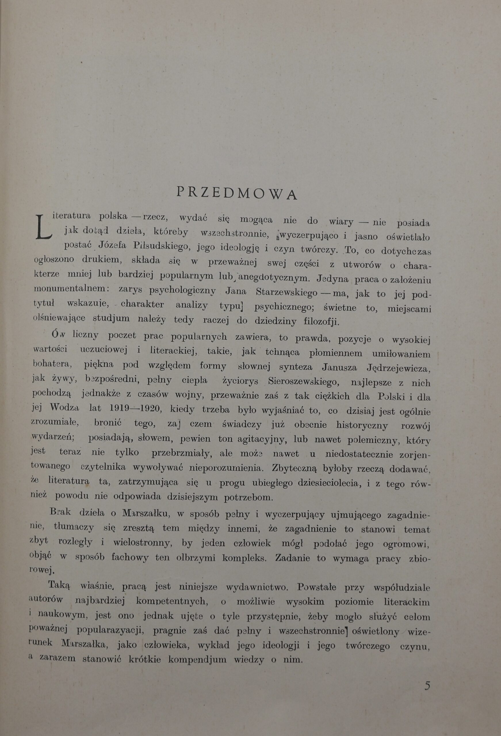 Dzieło gromadzi artykuły i rozprawy autorstwa wybitnych przedstawicieli ówczesnej elity intelektualnej i wojskowej, którzy analizują różne aspekty działalności Józefa Piłsudskiego – od jego walki o niepodległość, przez rolę w tworzeniu zrębów państwa, po koncepcje polityczne i społeczne. Publikacja stanowi nie tylko dokument epoki, ale także cenne źródło do badań nad kształtowaniem się mitu piłsudczykowskiego i dominującej narracji historycznej w okresie międzywojennym.
