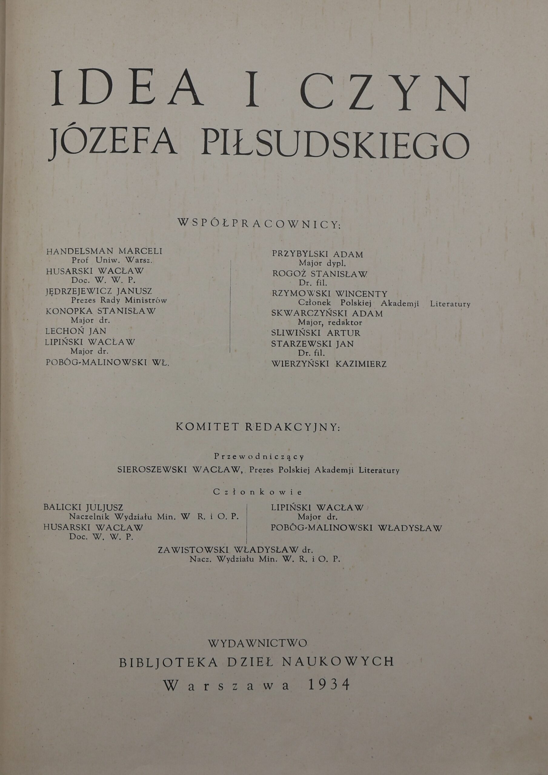 IDEA I CZYN JÓZEFA PIŁSUDSKIEGO [1934]