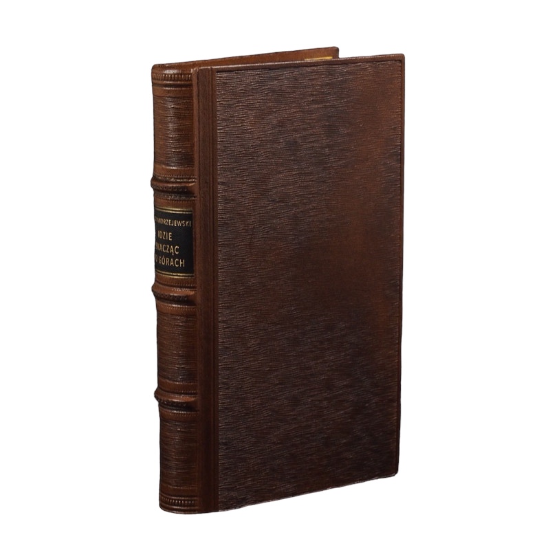 Egzemplarz czysty w bardzo dobrym stanie. Pełna ciemnobrązowa skóra. Tłoczenia na polach grzbietu oraz okładkach i krawędziach. Złocona tytulatura na skórzanym szyldziku. Wyklejka ręcznie marmoryzowana. Brzegi kart barwione.