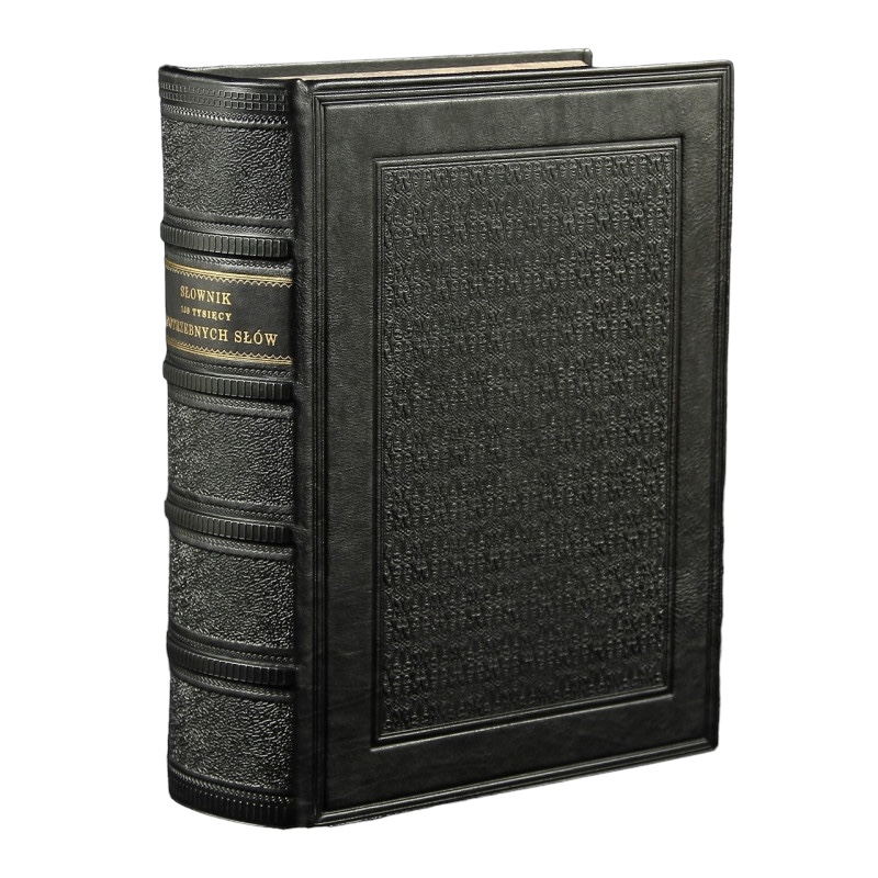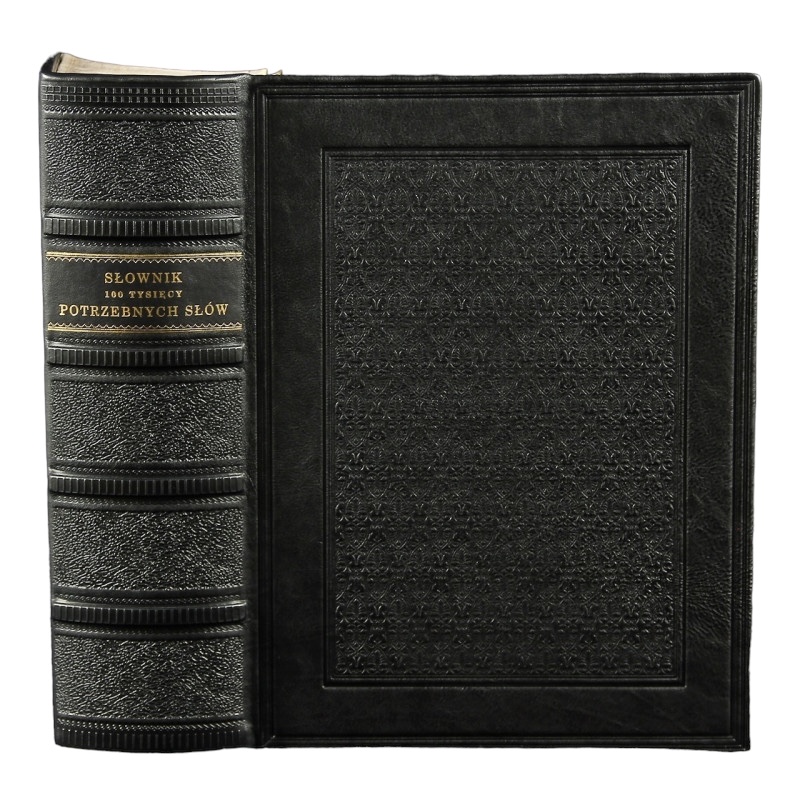 Egzemplarz czysty w bardzo dobrym stanie. Pełna czarna skóra. Tłoczenia na polach grzbietu, okładkach oraz krawędziach. Tytulatura złotem na skórzanym szyldziku. Wyklejki oraz brzegi kart ręcznie marmoryzowane.