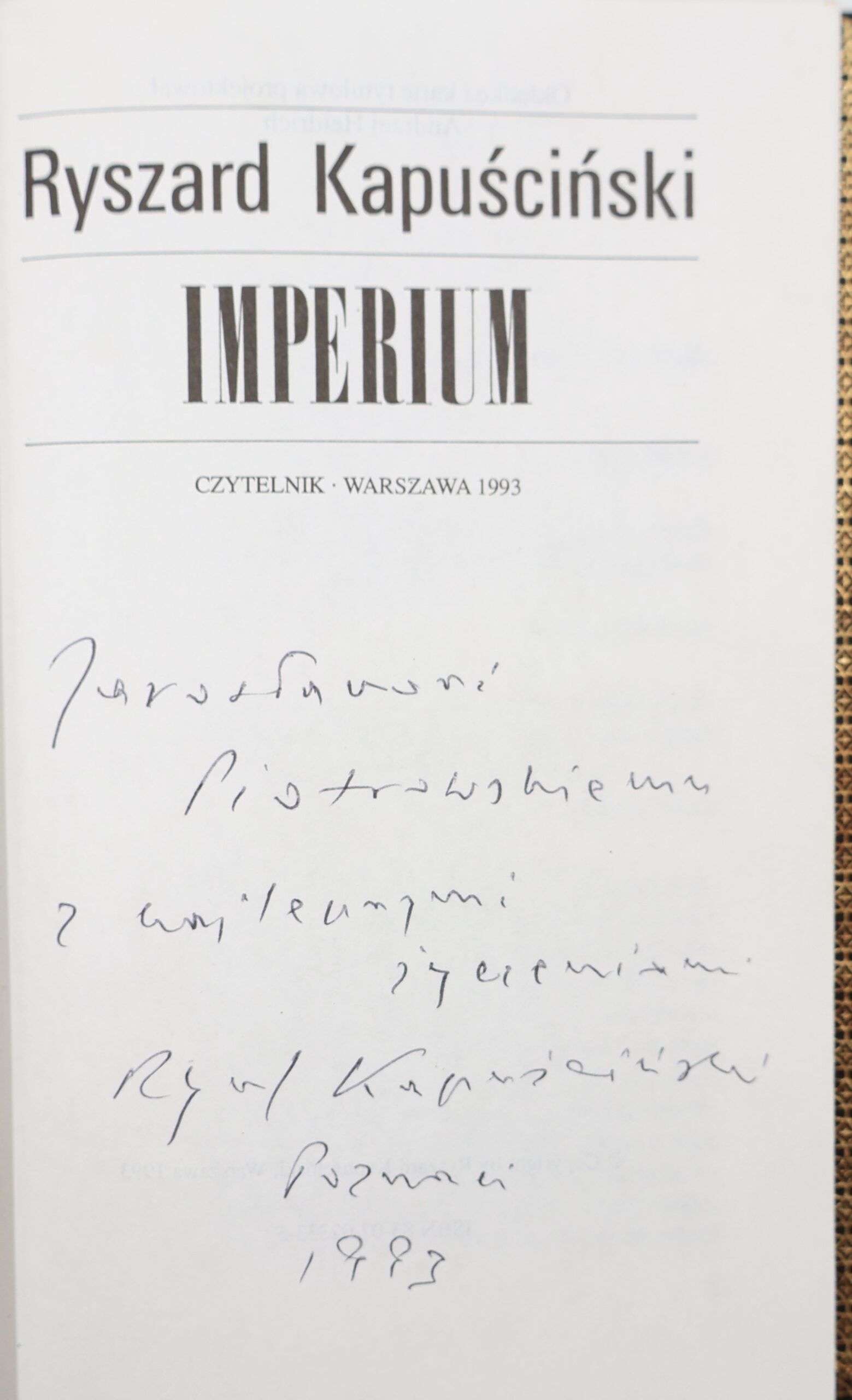 Prezentowany egzemplarz jest wyjątkowy — zawiera autorską dedykację Ryszarda Kapuścińskiego, co nadaje mu rangę unikatowego obiektu kolekcjonerskiego. Ręcznie wykonana skórzana oprawa introligatorska dodaje mu elegancji i trwałości, czyniąc z tej książki prawdziwą ozdobę biblioteki bibliofila. Idealny wybór dla kolekcjonerów literatury polskiej, miłośników reportażu oraz osób ceniących książki o ponadczasowej wartości intelektualnej i estetycznej.