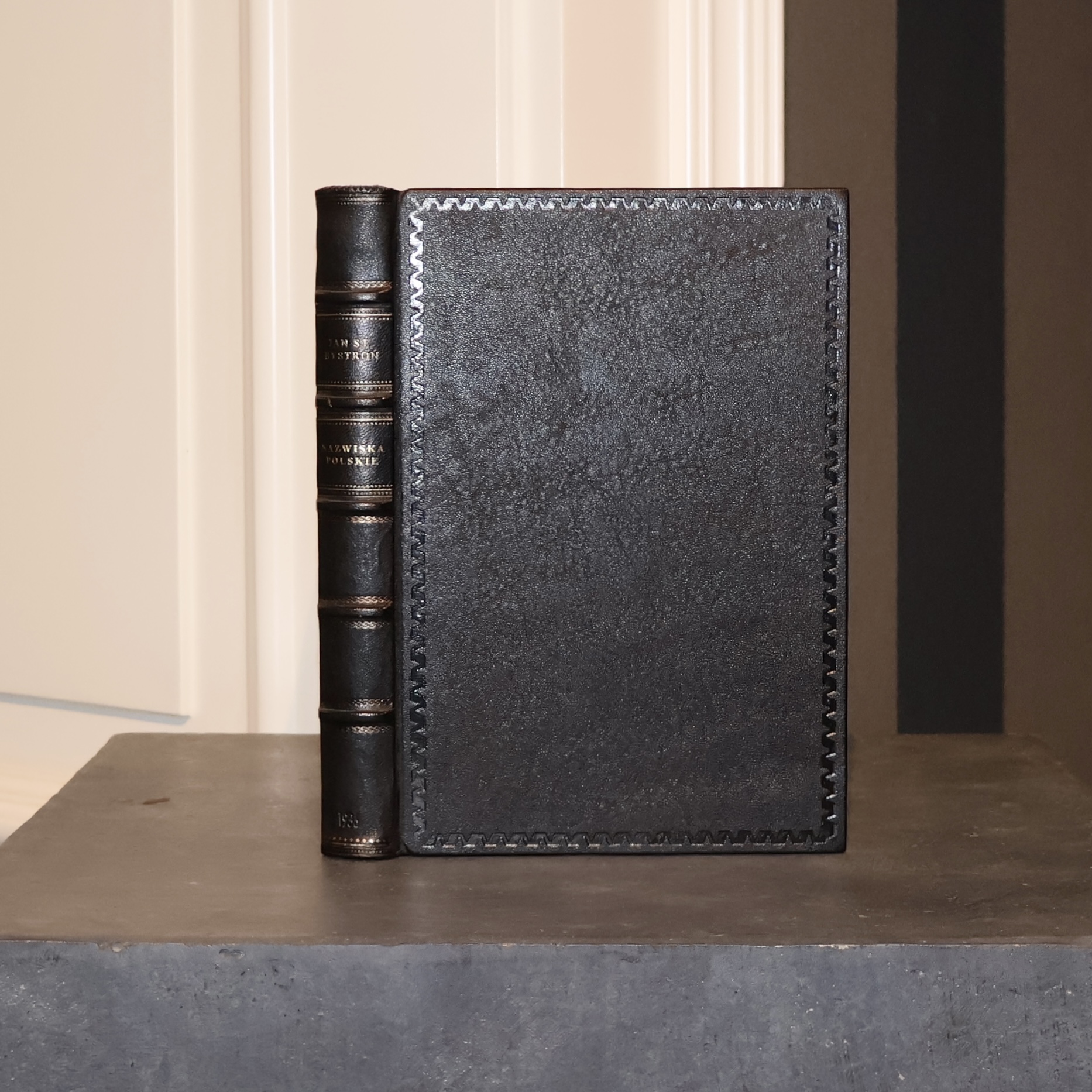 Pełna skóra naturalna, oprawa bibliofilska wykonana ręcznie w introligatorni Antykwariatu Polskiego.