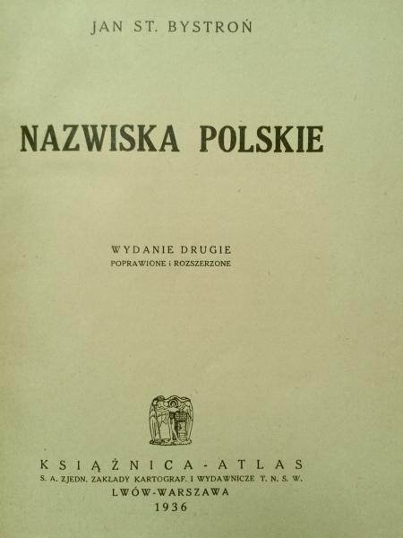 JAN ST. BYSTROŃ: NAZWISKA POLSKIE. ZARYS HISTORYCZNO-ETYMOLOGICZNY [1936]