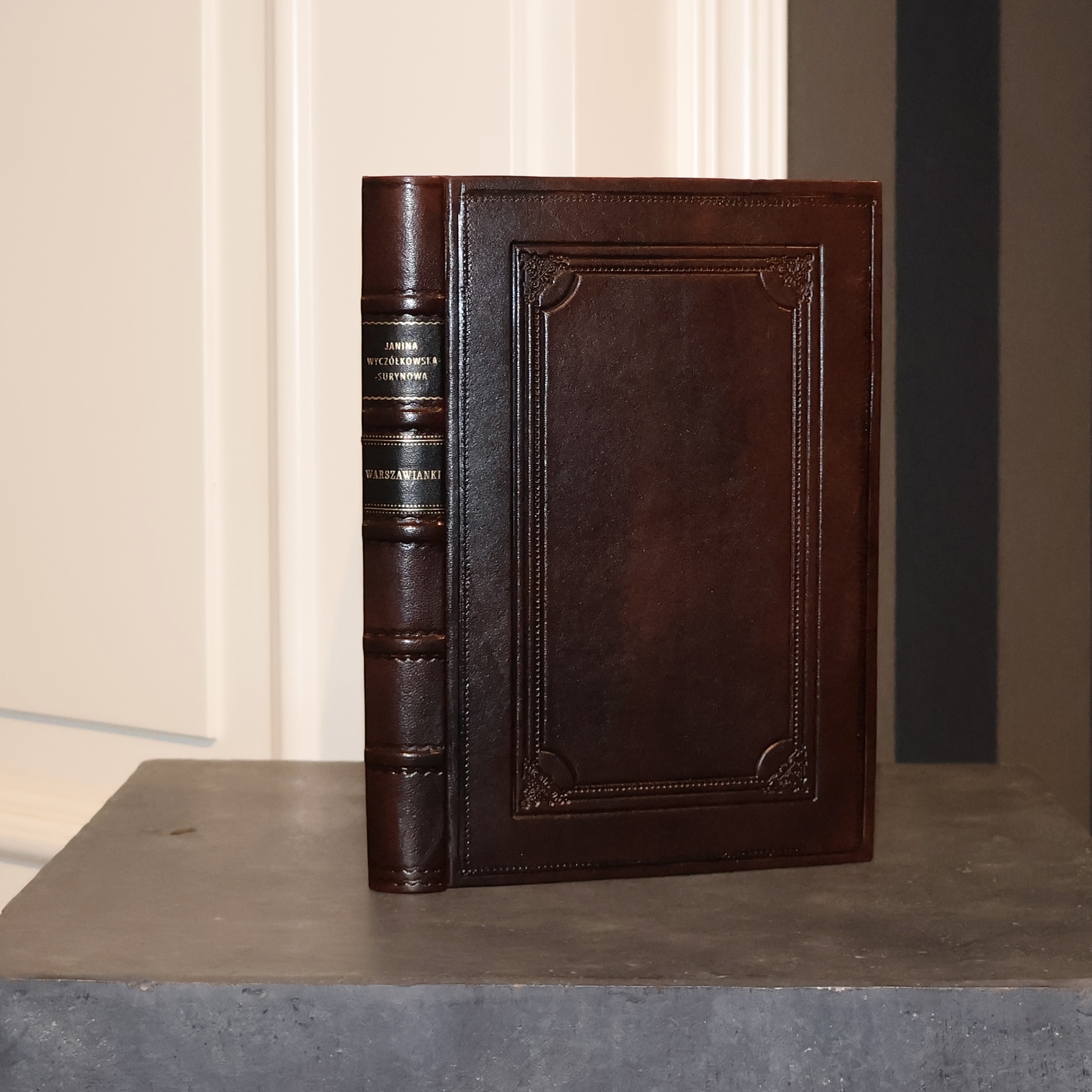 Pełna skóra naturalna, oprawa bibliofilska wykonana ręcznie w introligatorni Antykwariatu Polskiego.