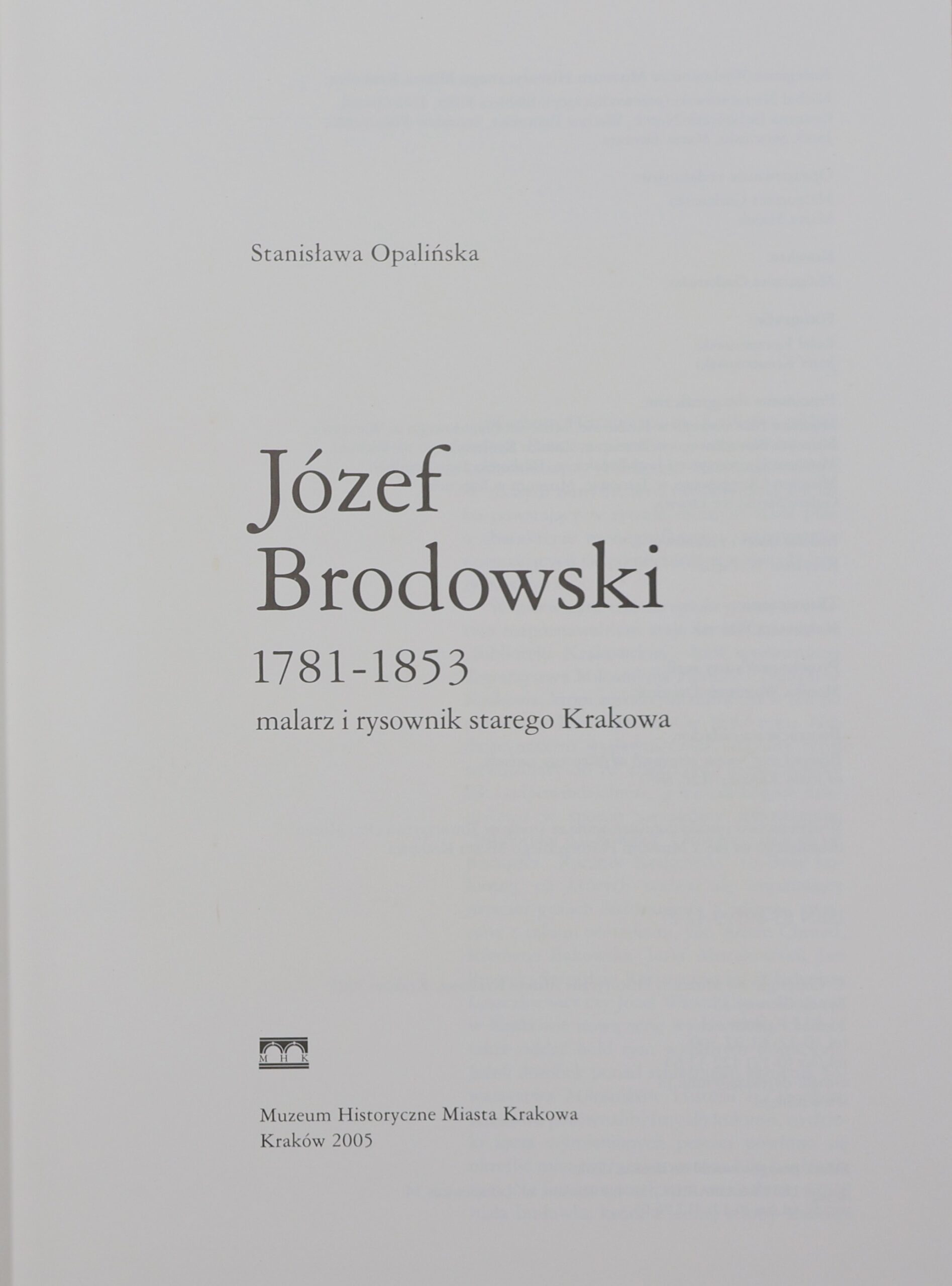 Józef Brodowski 1781-1853, malarz i rysownik starego Krakowa, 2005