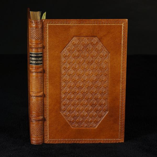 Egzemplarz w bibliofilskiej oprawie skórzanej wykonanej w pracowni Antykwariatu Polskiego.