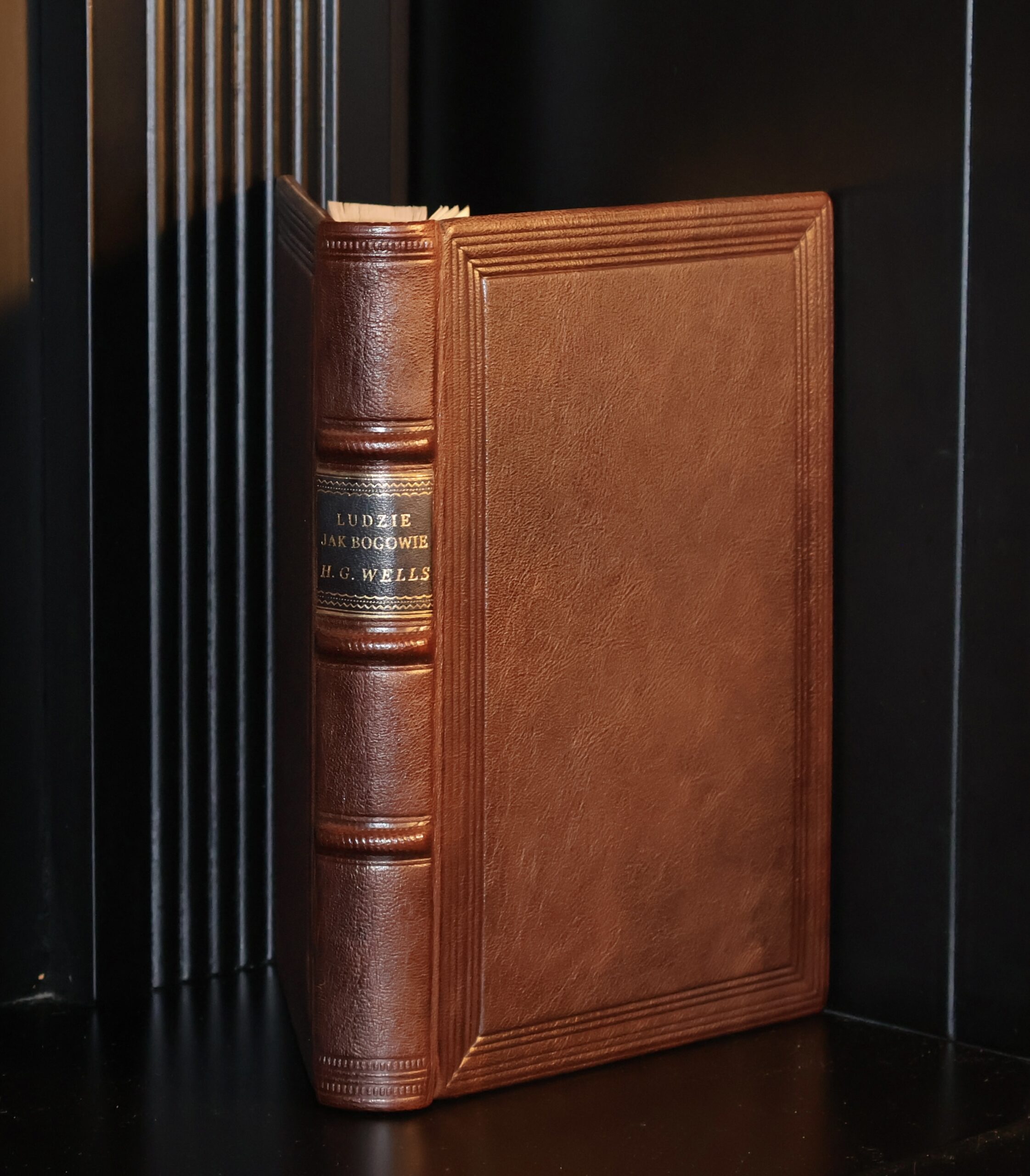 Oprawa skórzana wykonana ręcznie w introligatorni Antykwariatu Polskiego.