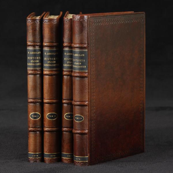 Egzemplarze w bibliofilskiej oprawie skórzanej wykonanej w pracowni Antykwariacie Polskim.