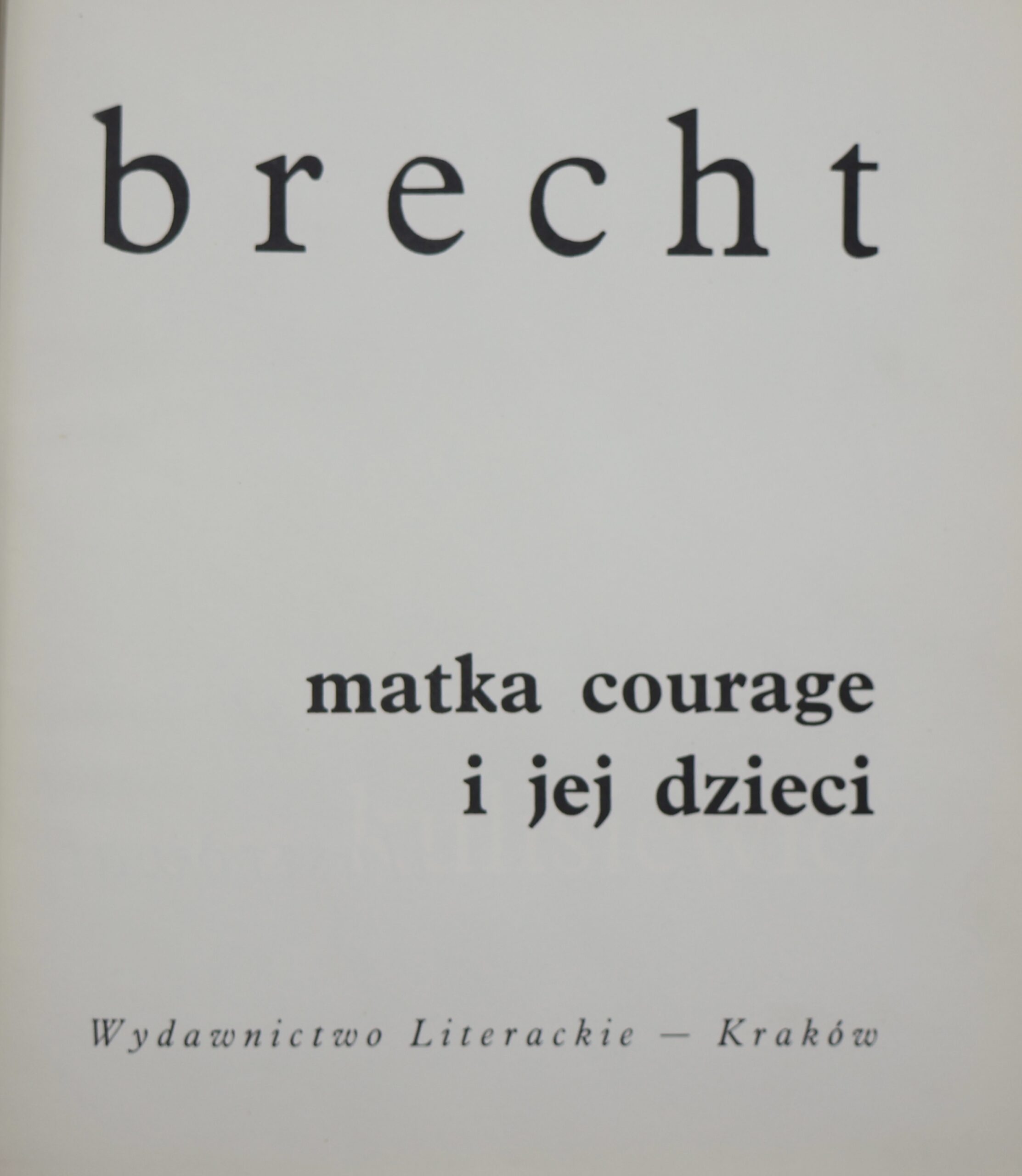 BRECHT BERTOLT, MATKA COURAGE I JEJ DZIECI : KRONIKA Z WOJNY TRZYDZIESTOLETNIEJ [1965].
